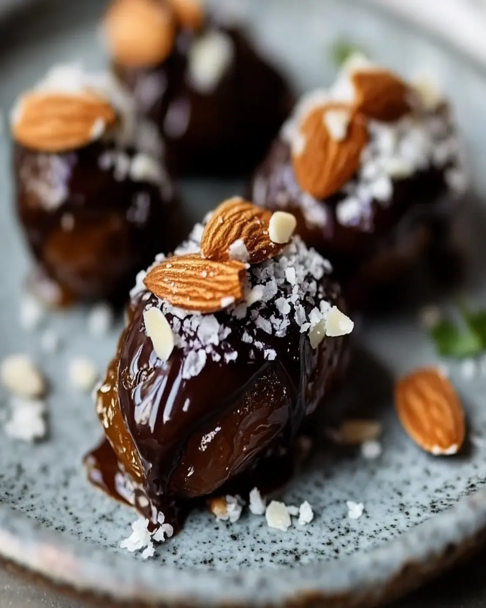 Melted dark chocolate provides a rich coating that adds depth and indulgence to the stuffed dates. Its slightly bitter notes balance the sweetness of the dates and coconut beautifully.