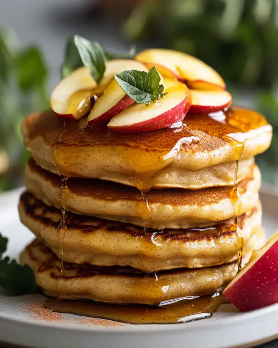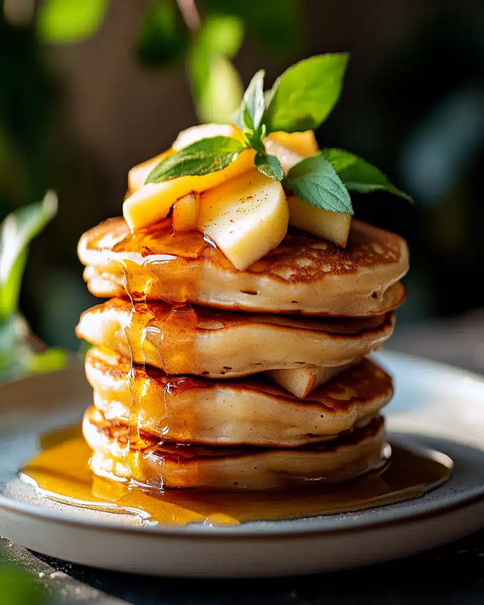 Delicious and fluffy pancakes made with yogurt and fresh apples, perfect for a breakfast treat.