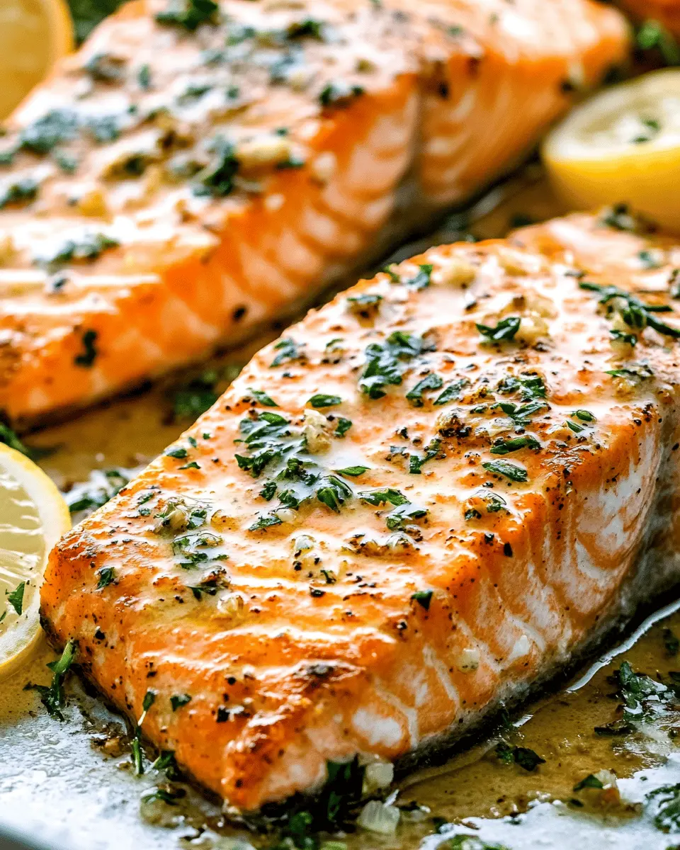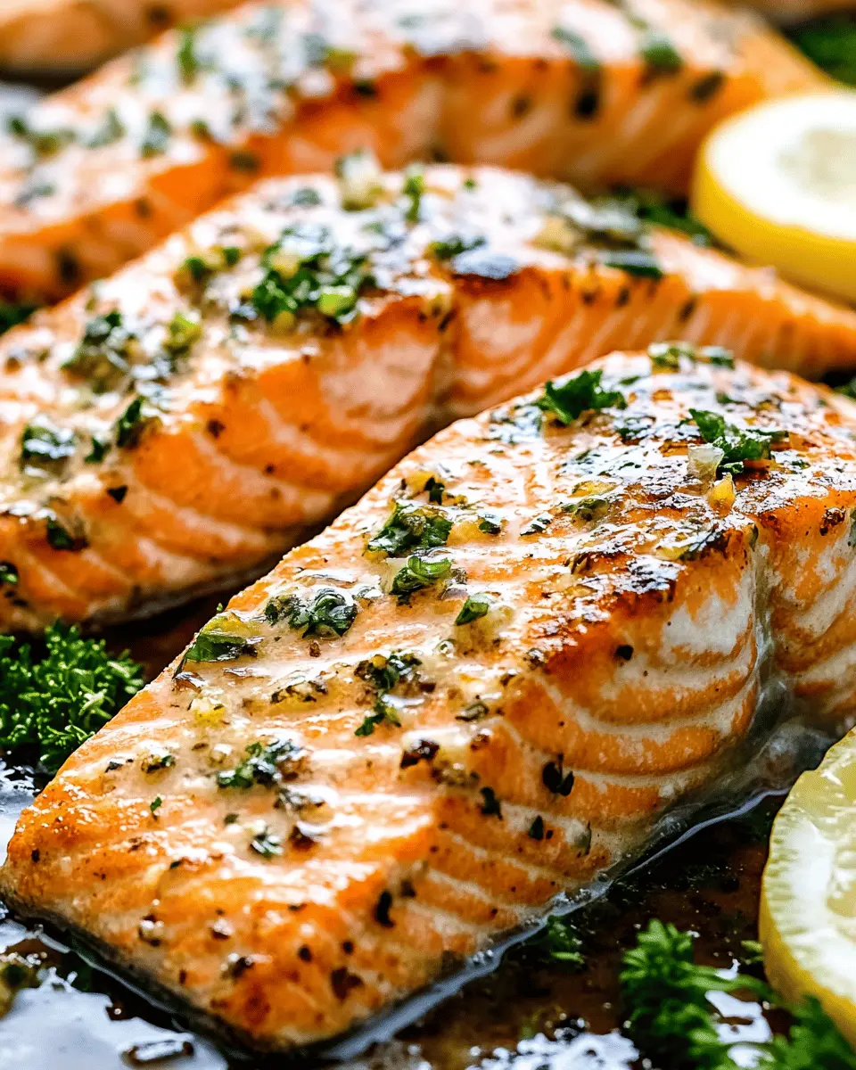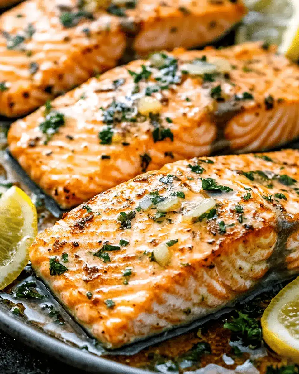 The combination of rich, buttery sauce and aromatic garlic elevates the natural flavors of the salmon, creating a mouthwatering experience. With each bite, you’ll enjoy a balance of savory and slightly tangy notes from the lemon juice, making this dish a standout at any dinner table.