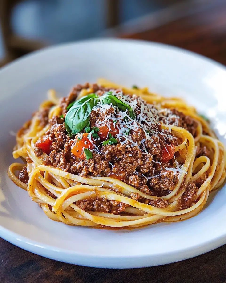 A rich and hearty beef bolognese sauce served over linguine, perfect for a comforting dinner.