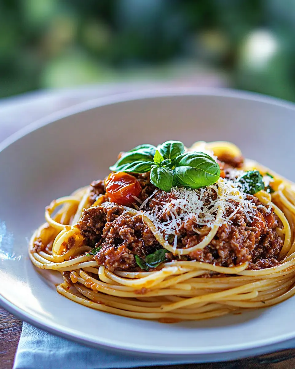 For those looking to add a fresh touch, consider serving a side salad with mixed greens, cherry tomatoes, and a light vinaigrette. The crispness of the salad balances the heaviness of the pasta, providing a refreshing contrast that enhances your dining experience. Additionally, sprinkle some freshly grated Parmesan cheese on top of the bolognese just before serving for an extra layer of flavor and a touch of elegance.