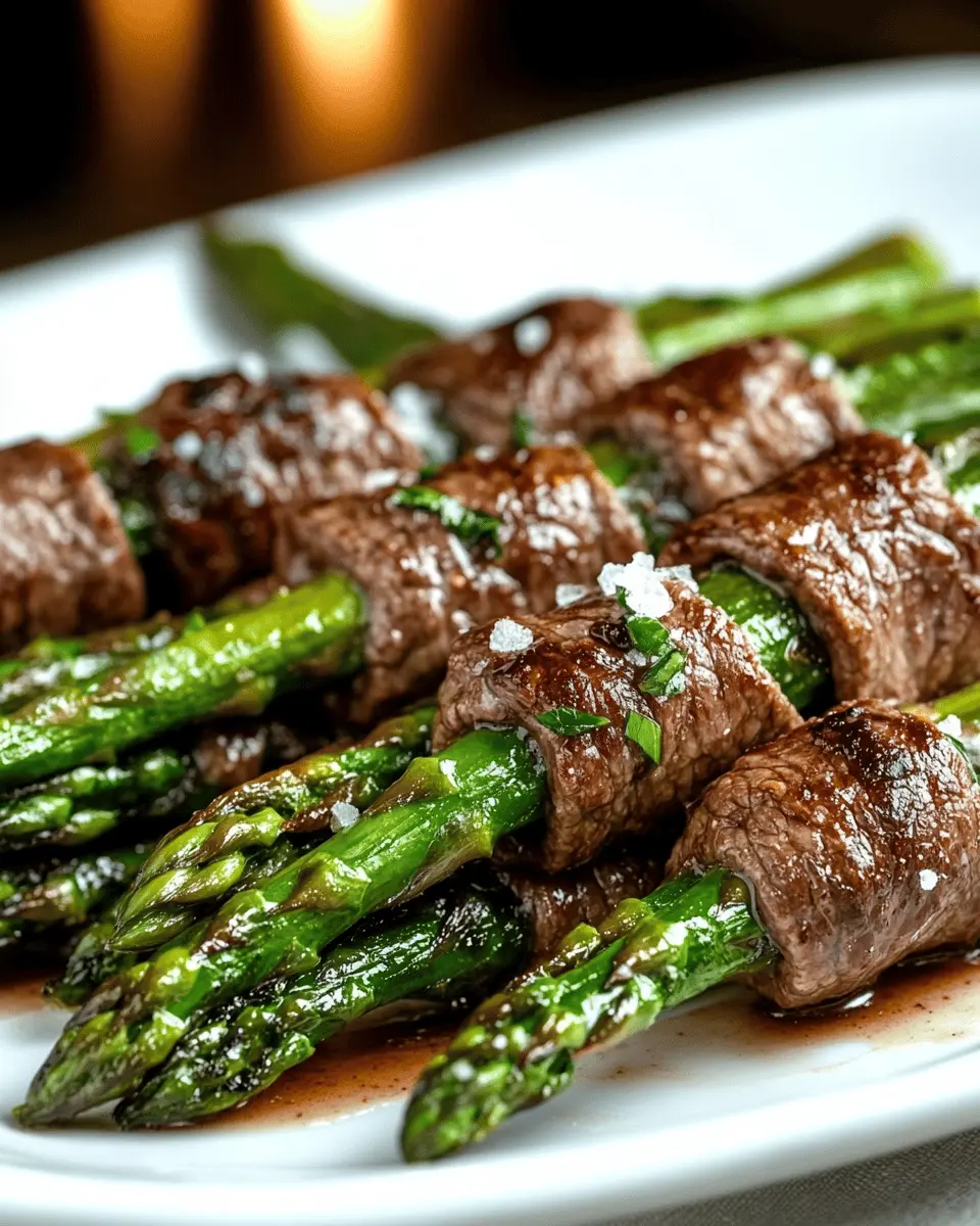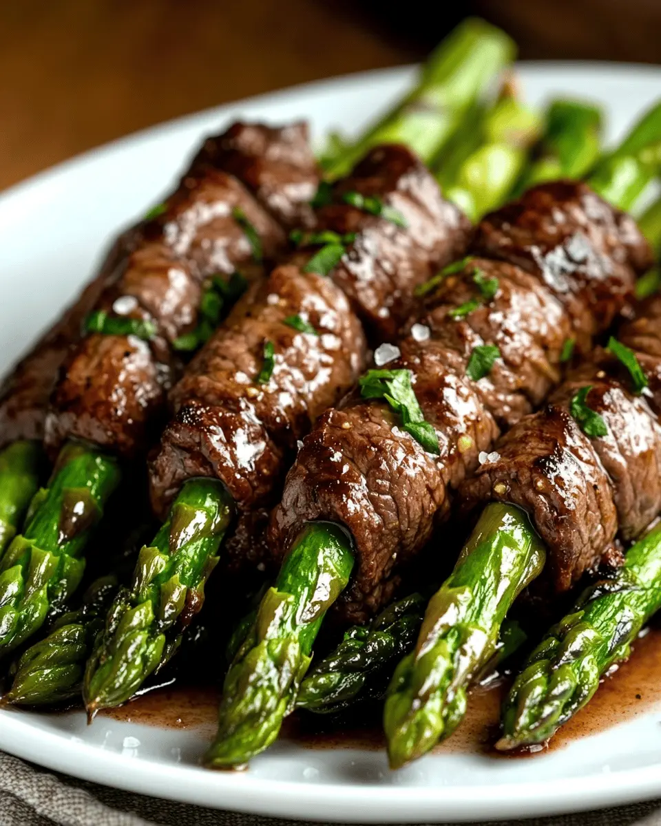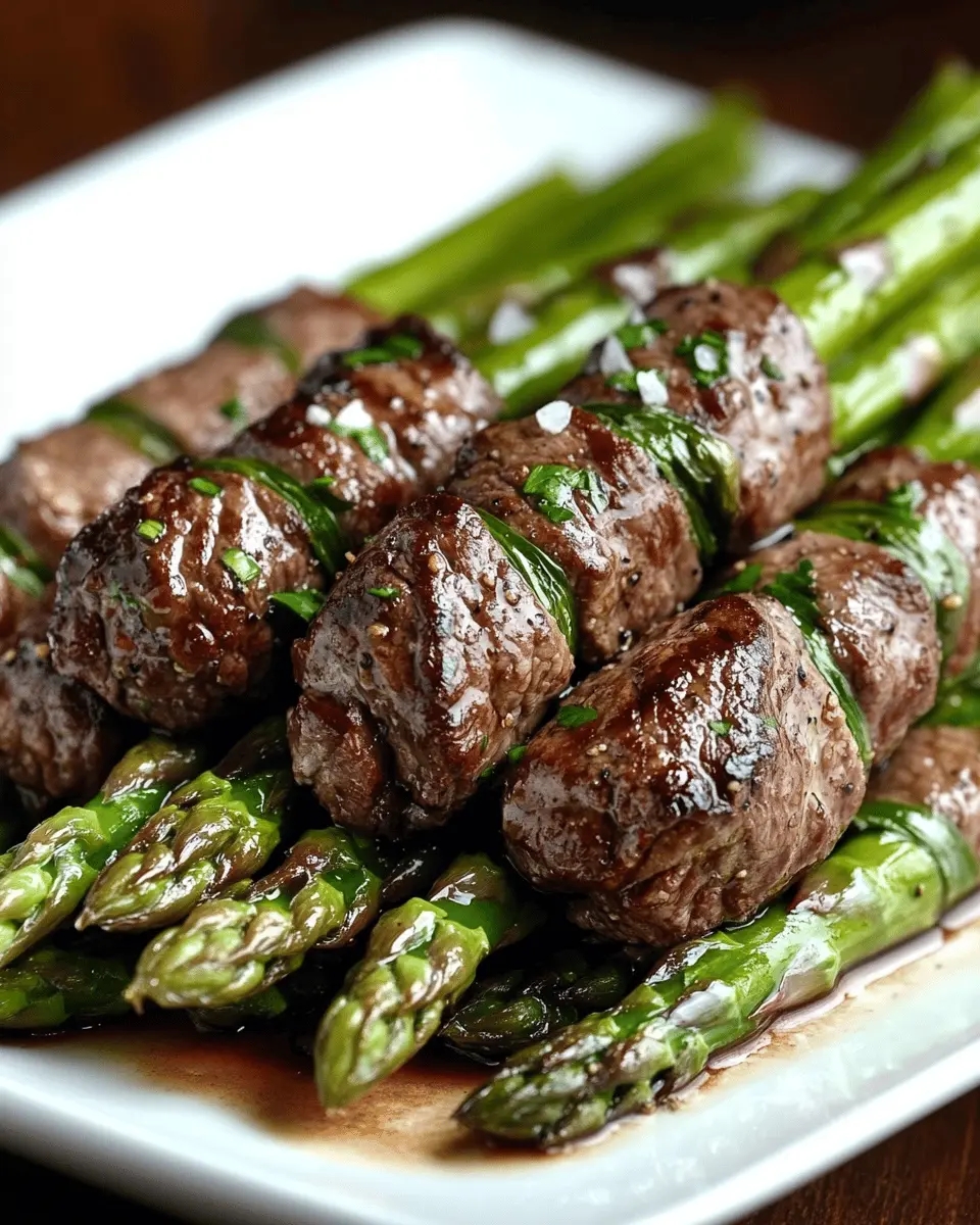 Delicious beef-wrapped asparagus bundles, perfect for an appetizer or main dish.