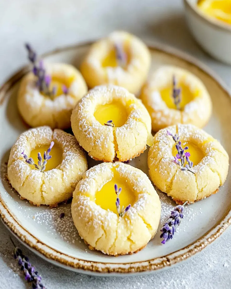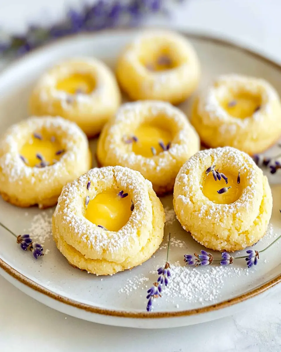 Delightful thumbprint cookies infused with lemon and lavender, perfect for tea time or any sweet occasion.
