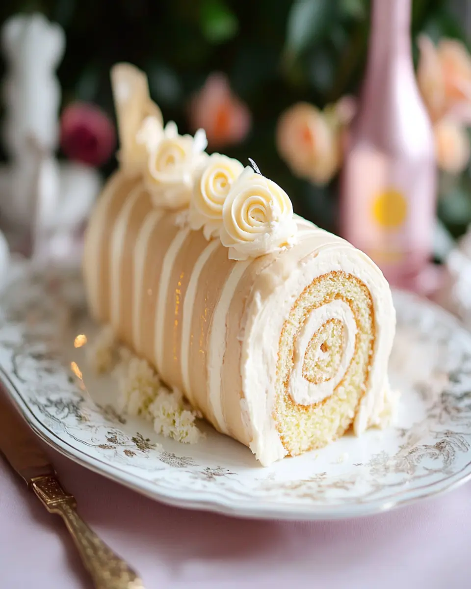 This delightful Champagne Cake Roll is a light and airy dessert, perfect for celebrations and special occasions.