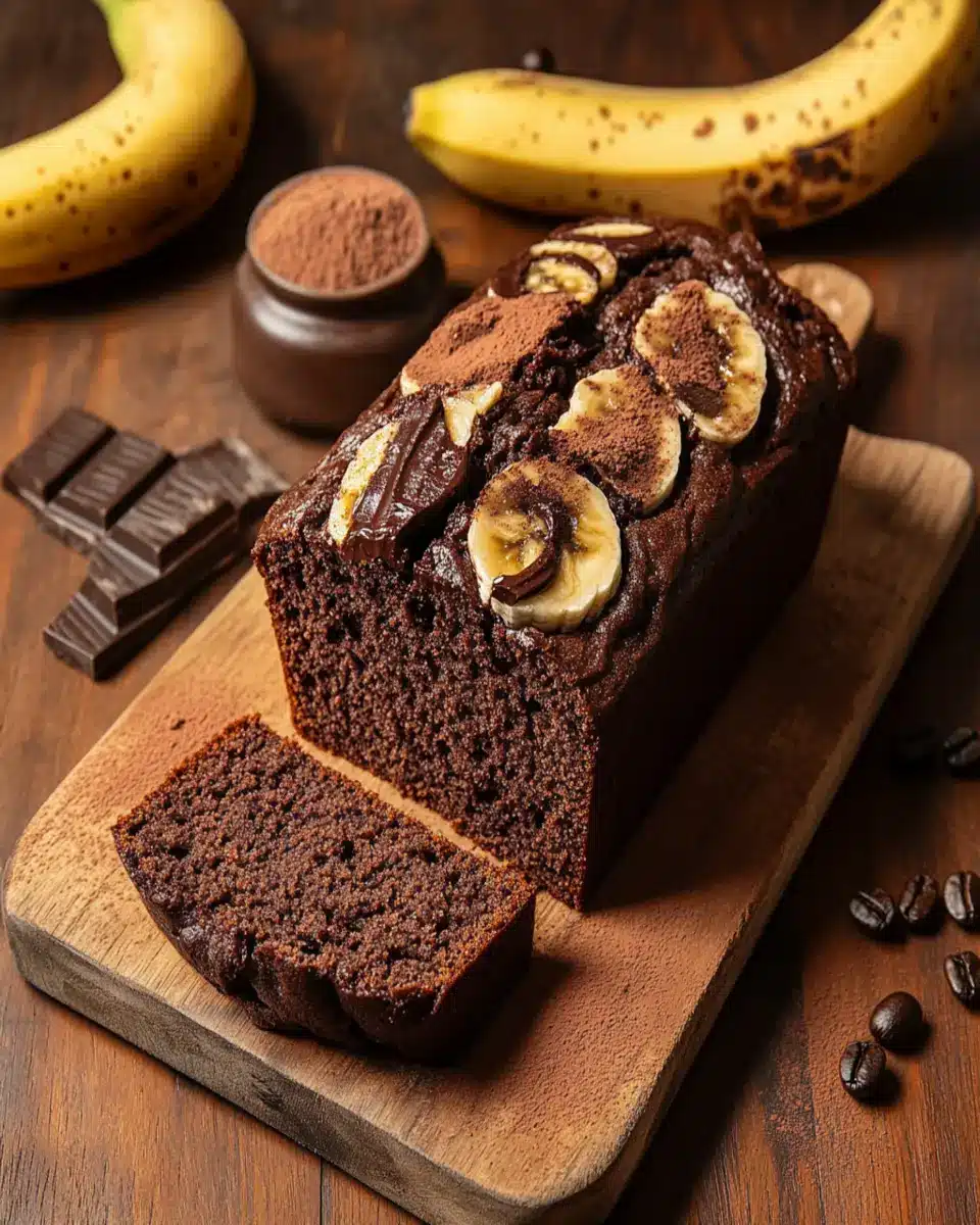 In conclusion, Chocolate Espresso Banana Bread is not just a delicious dessert; it’s a perfect blend of rich flavors that appeals to both the taste buds and the soul. This easy-to-make recipe combines the sweetness of ripe bananas with the boldness of espresso and chocolate, making it an ideal treat for young professionals and homemade-food lovers alike. Whether enjoyed as a breakfast item or a sweet snack, each slice promises a delightful experience. Don’t hesitate to try making this delectable loaf; it’s sure to become a favorite in your recipe collection. Cook, save, and share this delightful treat with friends and family!