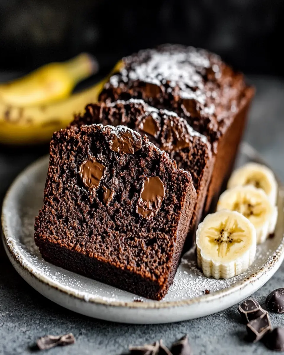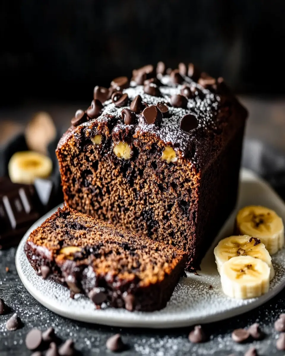 A rich and moist banana bread infused with the flavors of chocolate and espresso, perfect for breakfast or as a delightful snack.