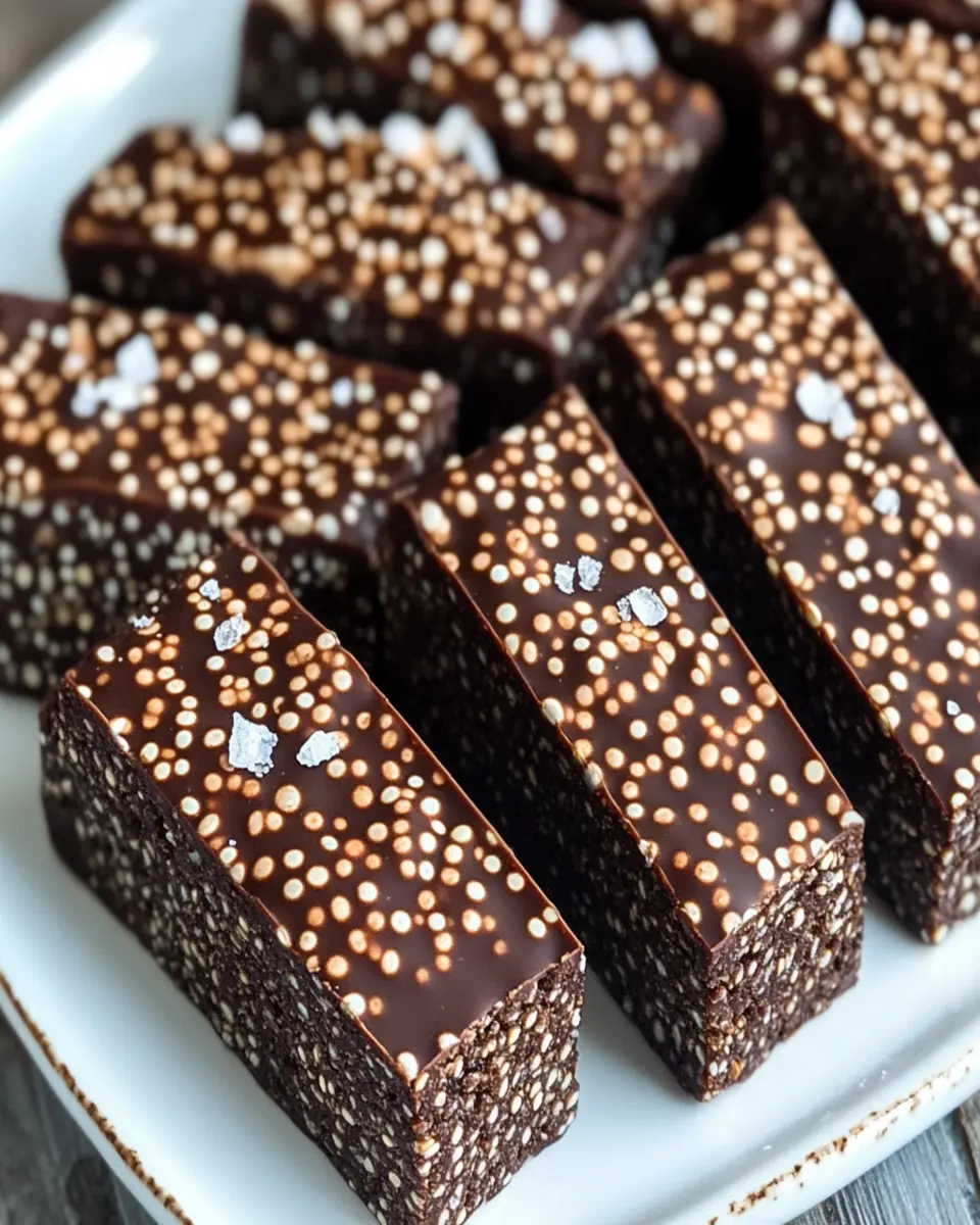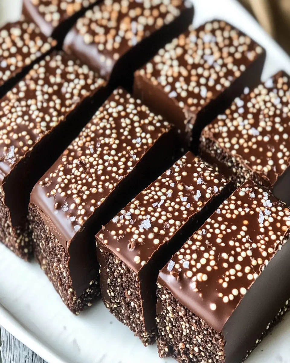Deliciously crunchy and chocolatey bars made with quinoa, perfect for a healthy snack.