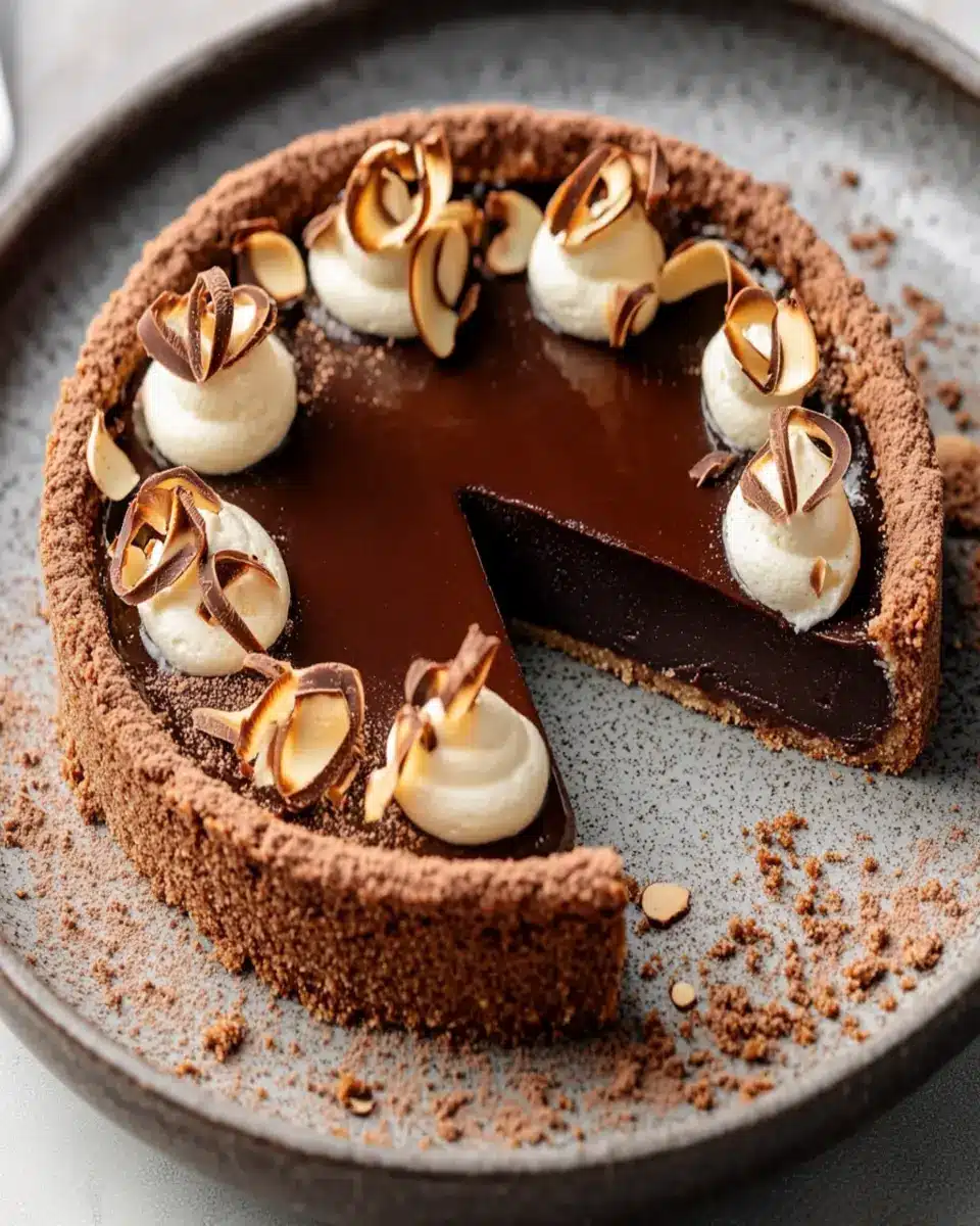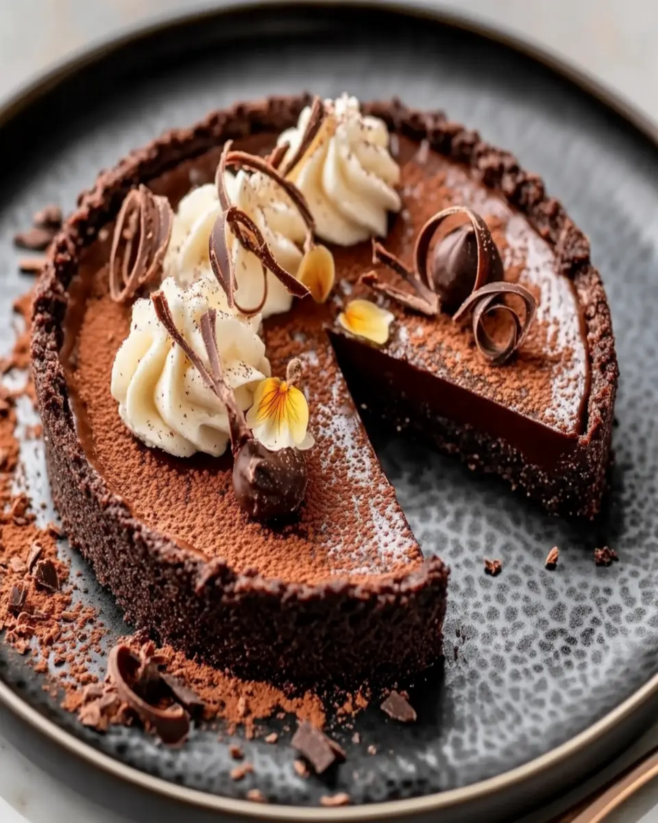 For an elegant finishing touch, serve your Chocolate Truffle Tart chilled with a dollop of freshly whipped cream or a sprinkle of cocoa powder. You can also add fresh berries on the side for a burst of color and flavor. This not only enhances the presentation but also provides a delightful contrast to the rich chocolate.