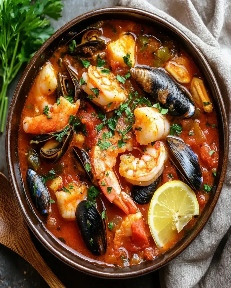 Cioppino can be made ahead of time, making it a perfect option for meal prep. Store it in an airtight container in the refrigerator for up to three days. When reheating, do so gently on the stovetop to avoid overcooking the seafood. Consider adding a splash of fish stock or white wine to refresh the broth.