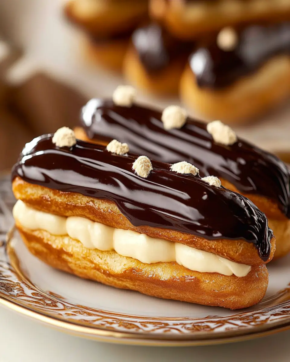 For those who enjoy a little crunch, consider topping your éclairs with crushed nuts such as hazelnuts or pistachios. This adds a delightful texture and a unique flavor that complements the soft, creamy filling beautifully. You can also use toasted coconut flakes for a tropical twist.