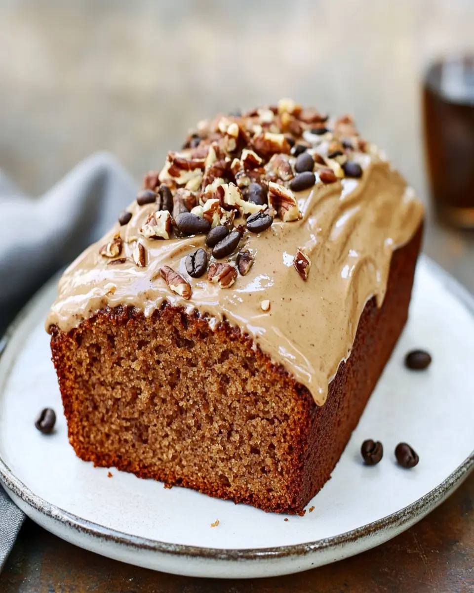 A delicious and moist banana bread infused with coffee, topped with a rich espresso frosting.