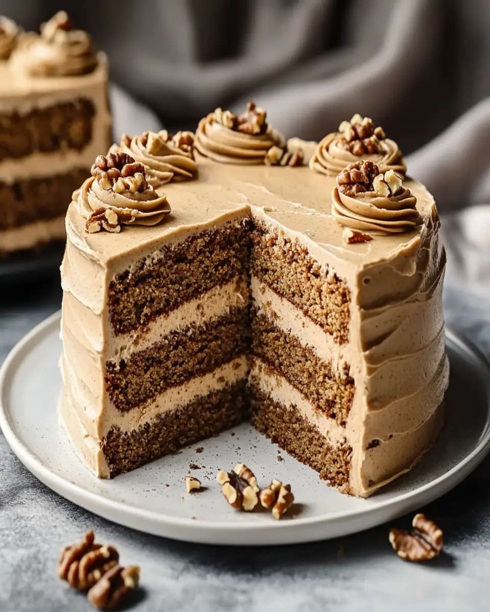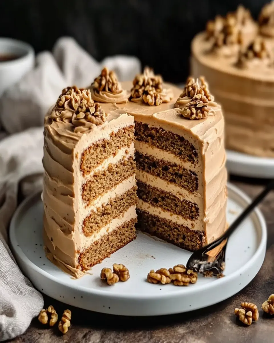 This Coffee Walnut Layer Cake is a delightful combination of rich coffee flavor and crunchy walnuts, perfect for any occasion.