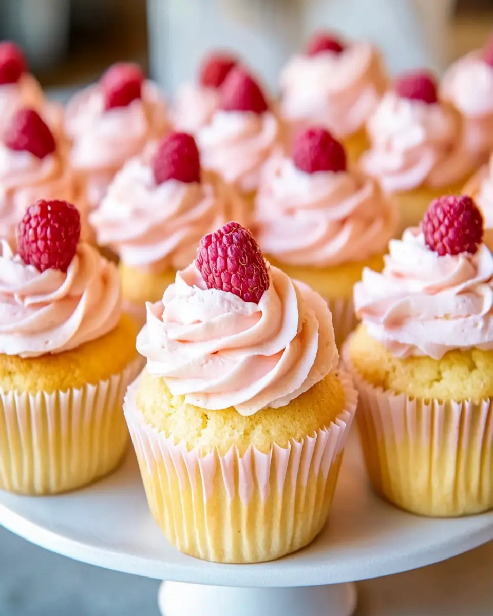 Fresh raspberries are the star of the show, adding bursts of tartness and vibrant color to the cupcakes. They not only contribute to the flavor but also make the cupcakes visually appealing.