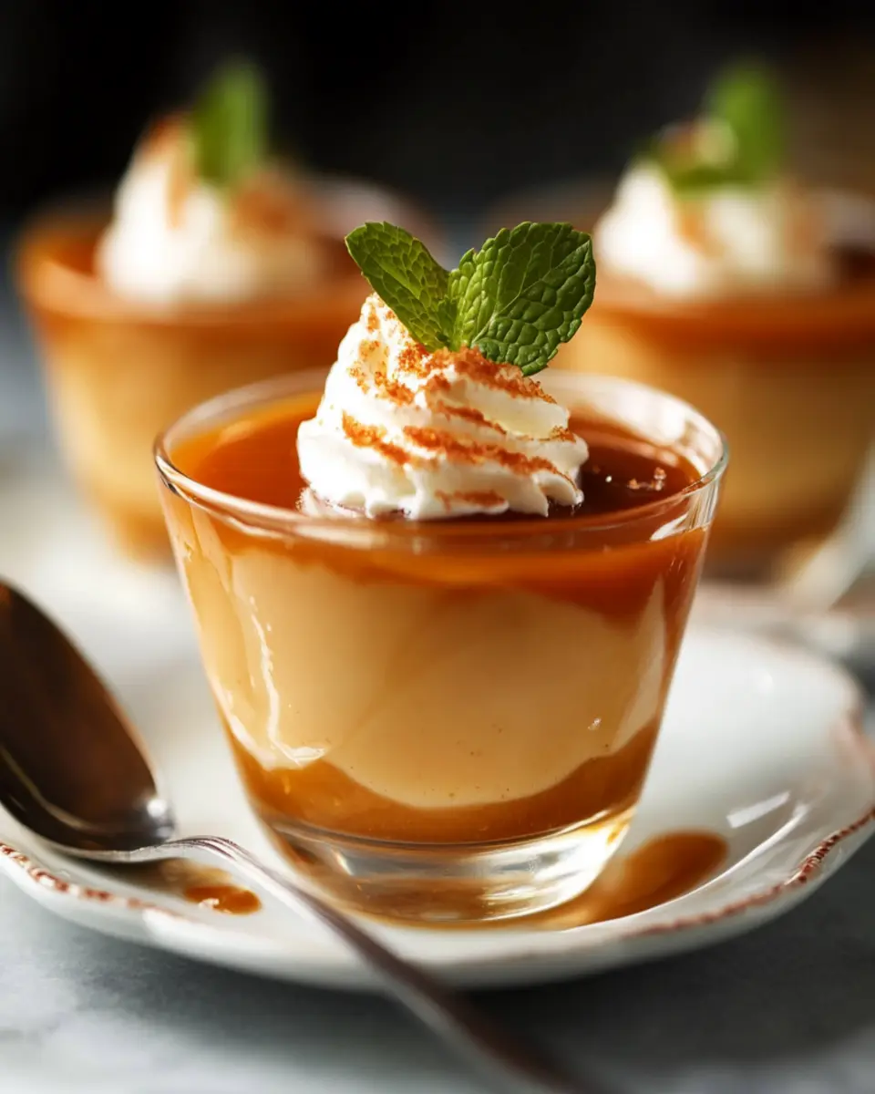 Serve your Creamy Caramel Pudding with a dollop of whipped cream for a light, airy contrast. A sprinkle of crushed nuts, such as pistachios or almonds, adds a delightful crunch and enhances the visual appeal. You can also top it with a drizzle of extra caramel sauce for an indulgent touch.