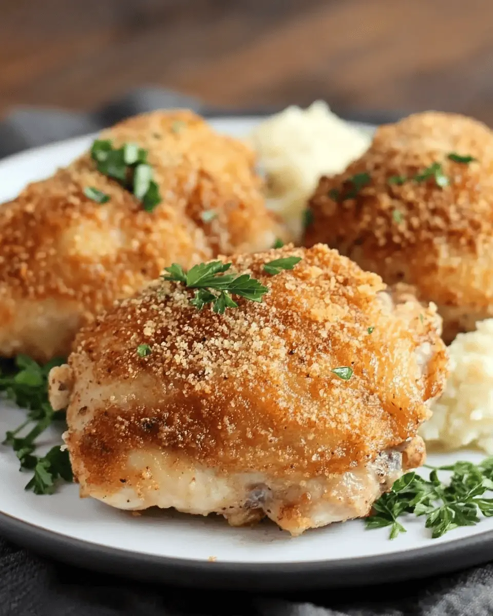 Deliciously crispy chicken thighs coated with a flavorful parmesan crust.