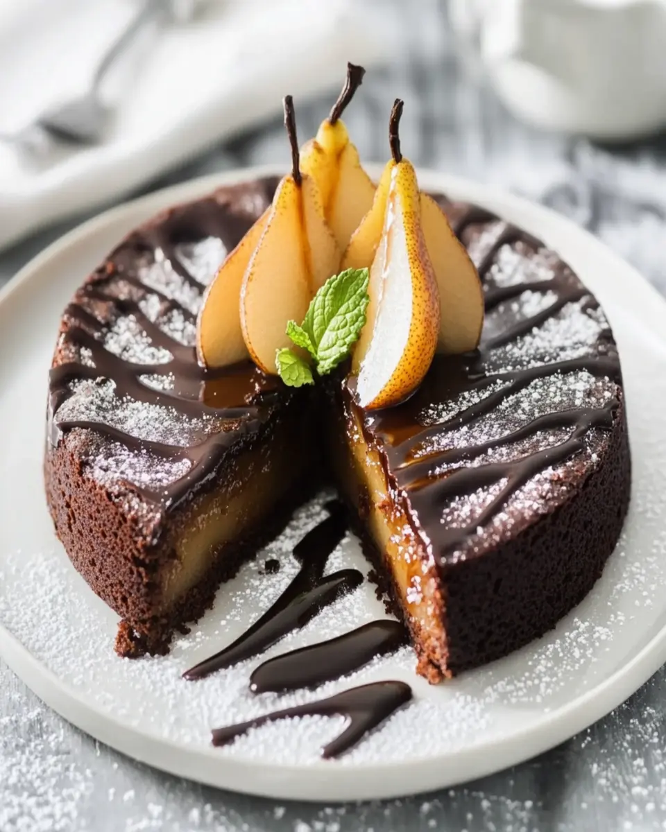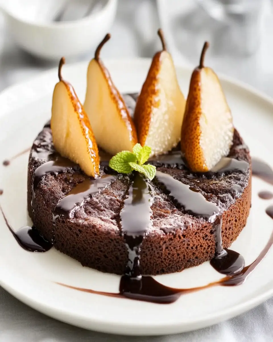 For an extra layer of flavor, consider letting the spiced pears sit with the cinnamon and nutmeg for about an hour before cooking. This allows the spices to infuse into the pears, creating a more aromatic topping that complements the rich chocolate cake. Enjoy this delightful dessert at any gathering or as a special treat for yourself!