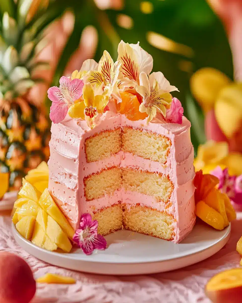 Imagine serving this vibrant cake at your next gathering, captivating your guests with its tropical allure. The cheerful appearance and exquisite taste make it perfect for celebrations, or simply as a treat to enjoy at home. With each slice, you’ll find yourself daydreaming of sandy beaches and sunny skies. Give this recipe a try, and you’ll soon discover why it’s become a favorite for many dessert enthusiasts!