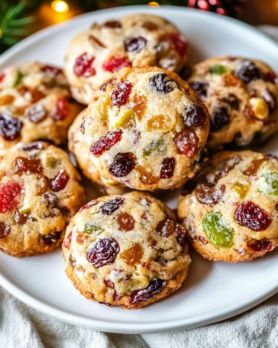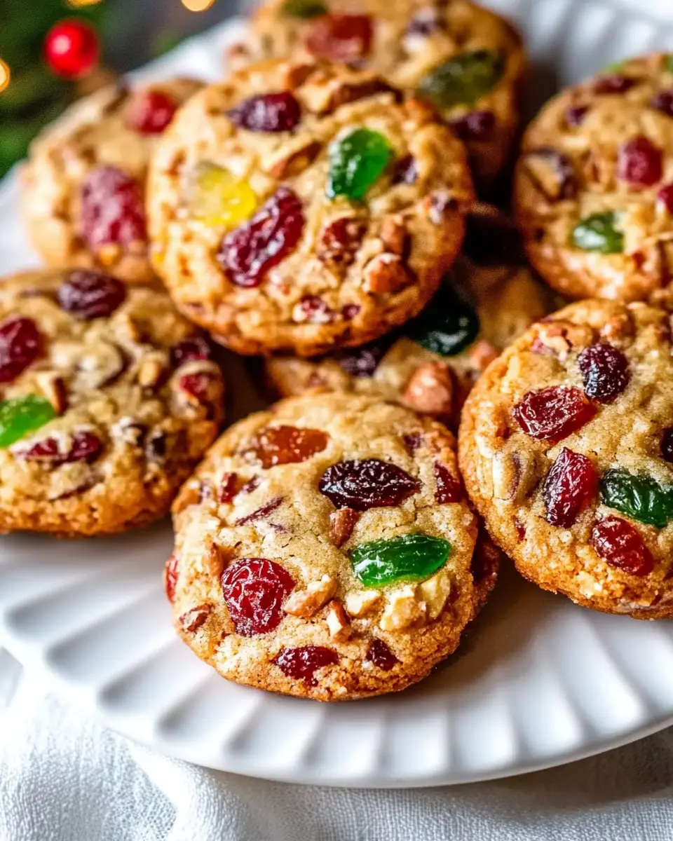 Delicious and festive fruitcake cookies perfect for the holiday season.