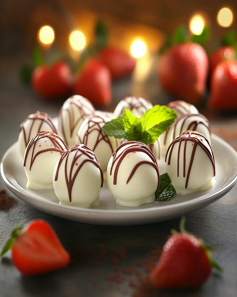 For a stunning presentation, arrange the truffles on a decorative platter and sprinkle with powdered sugar or crushed nuts for a touch of elegance. Adding a few whole strawberries as garnish not only adds color but also hints at the delicious flavor inside each truffle.