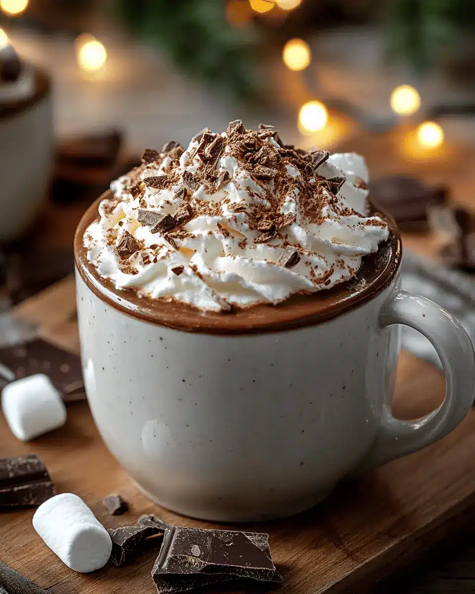 Pair your hot chocolate with holiday treats like gingerbread cookies or peppermint bark for a delightful snack alongside your drink. If you’re hosting a gathering, set up a hot chocolate bar where guests can customize their drinks with toppings like marshmallows, caramel drizzle, or even a dash of cinnamon. This not only enhances the flavor but also adds a fun interactive element to your holiday festivities!