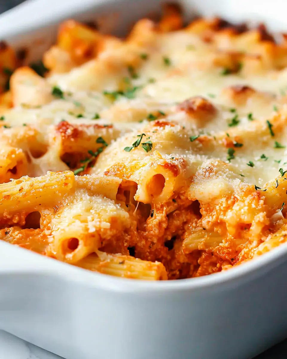 A delicious baked pasta dish featuring five types of cheese for a rich and creamy flavor.