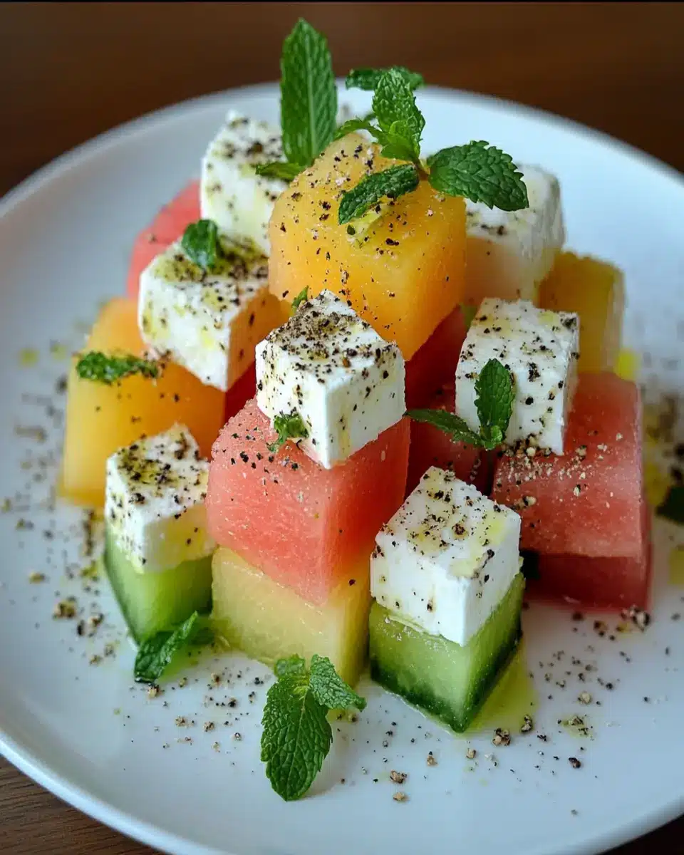 The Fresh Melon and Feta Tetris Salad is a delightful medley of flavors and textures, perfect for any summer gathering!