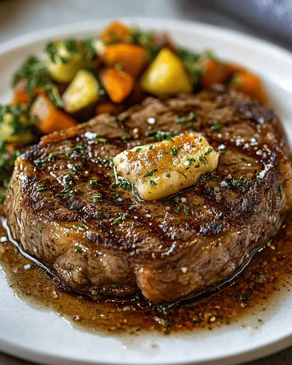 In conclusion, the Garlic Butter Ribeye Steak with Crispy Fat Cap is a culinary delight that combines rich flavors and tender meat to create an unforgettable dining experience. Whether you’re cooking for yourself or impressing guests, this recipe is straightforward and quick, making it perfect for busy nights. The savory garlic butter not only enhances the steak’s natural taste but also adds a touch of elegance to your meal.