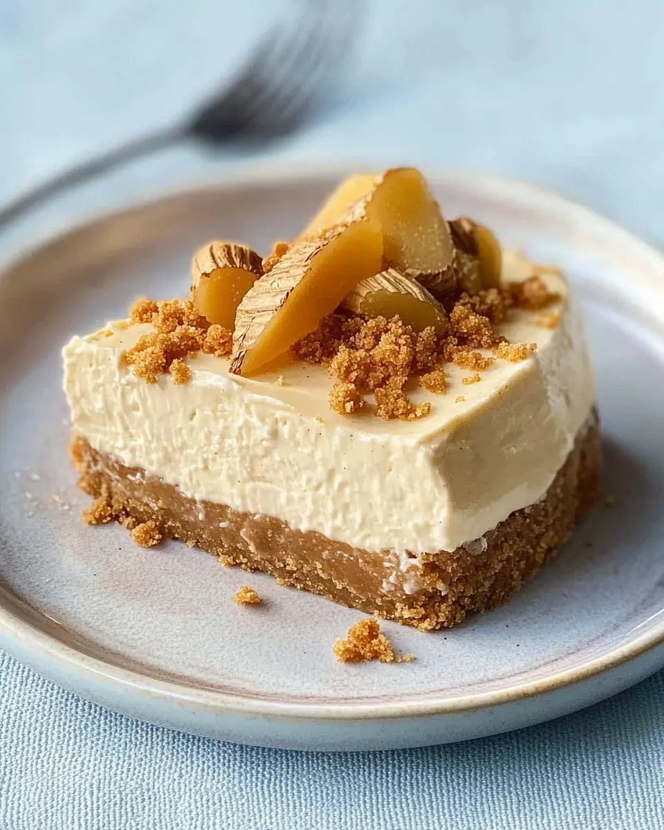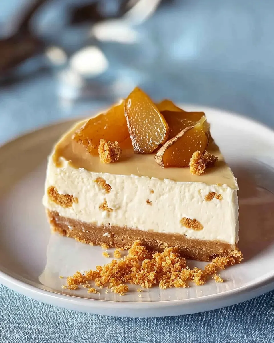 While the cheesecake is delicious on its own, consider garnishing it with a dollop of whipped cream or a sprinkle of crushed ginger cookies for added texture. You can also drizzle some additional caramel sauce or a fruit compote to enhance the visual appeal and flavor.