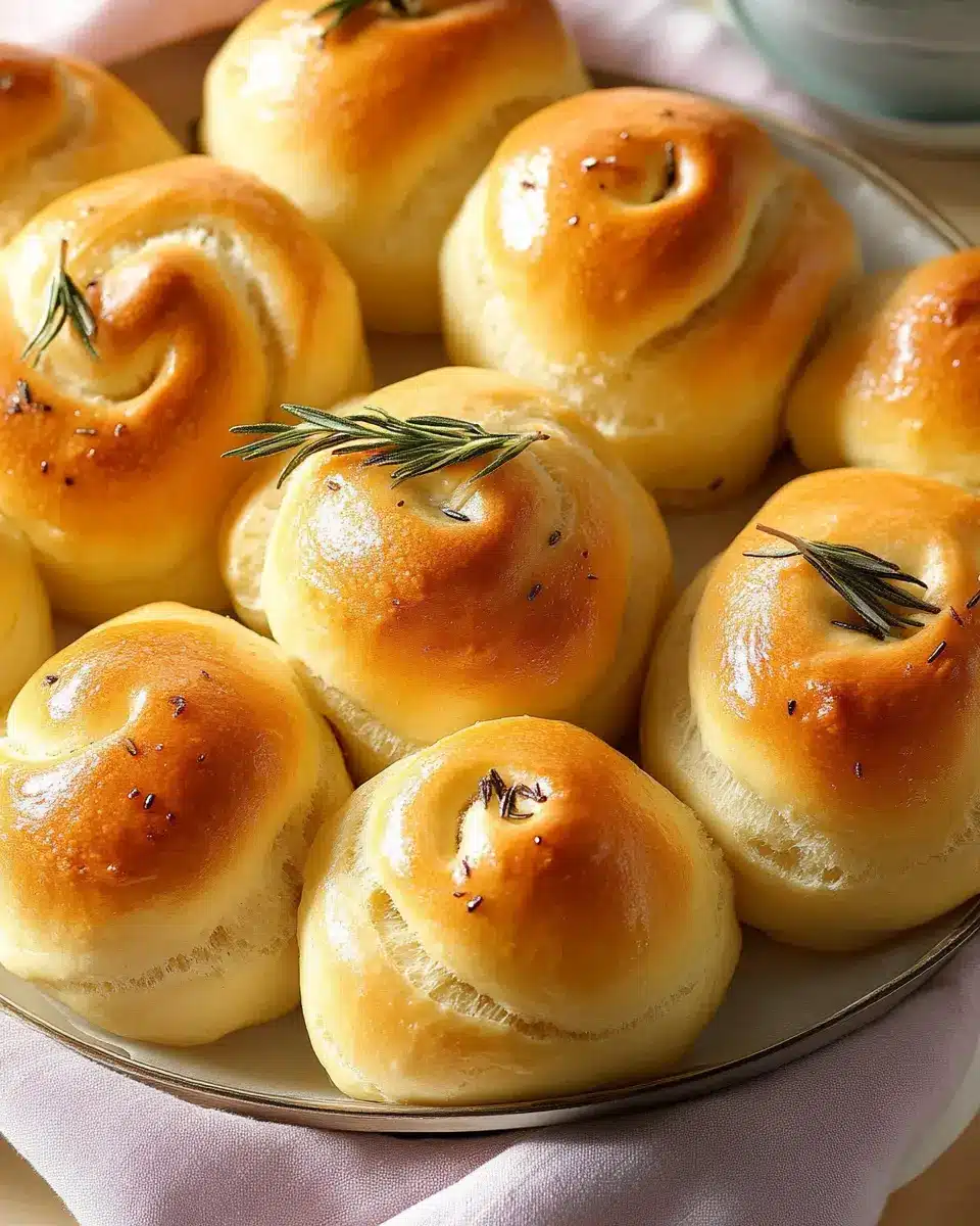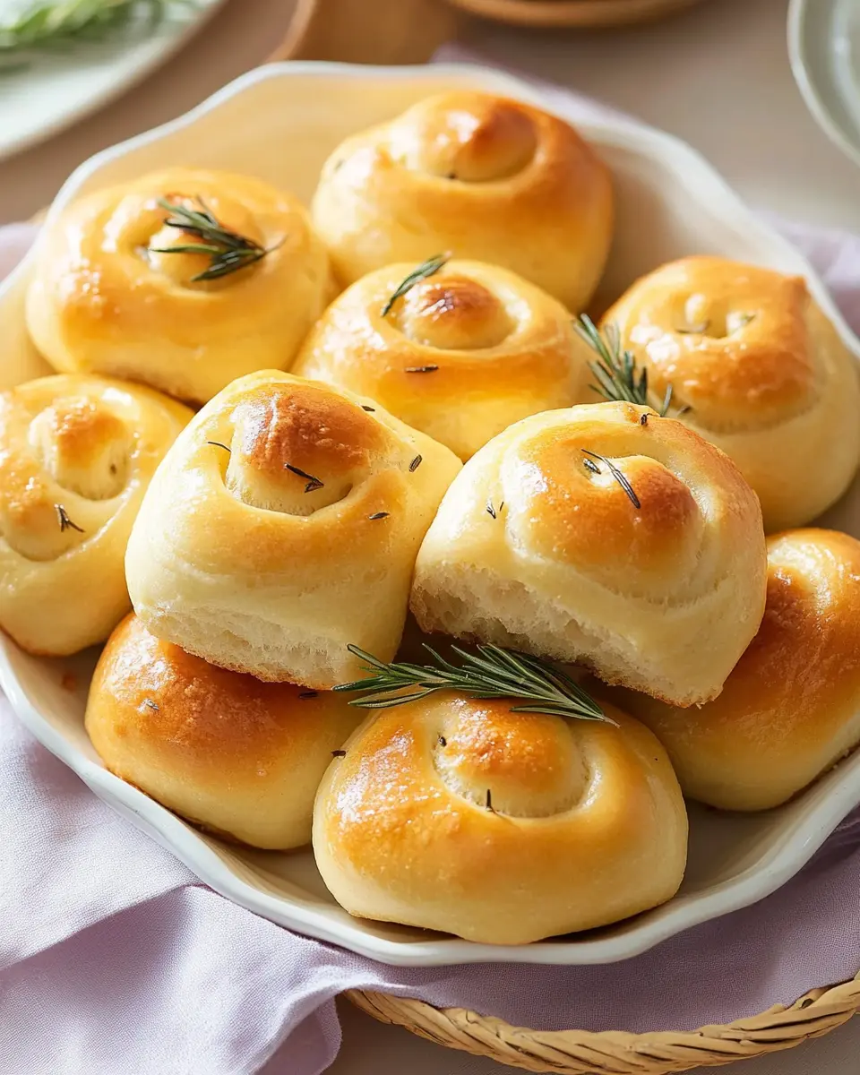 Soft, fluffy dinner rolls infused with fresh rosemary, perfect for any dinner table.