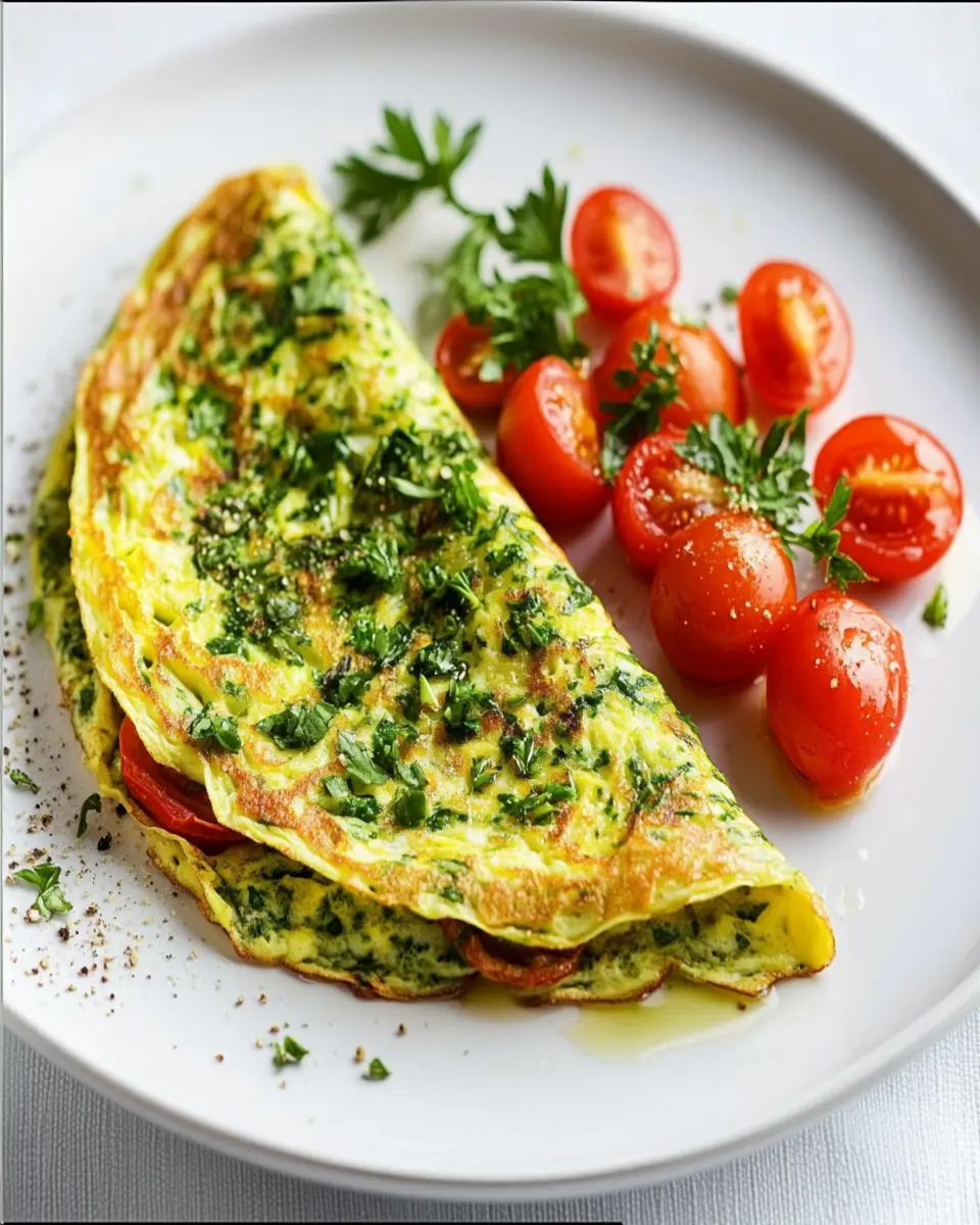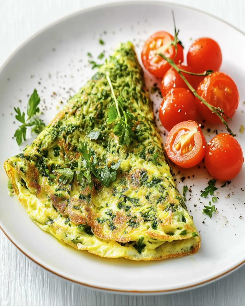 Serve your Green Omelette with a side of whole-grain toast or an avocado salad for a balanced meal. The hearty bread complements the lightness of the omelette, while the creamy avocado adds healthy fats and flavors that enhance the dish.