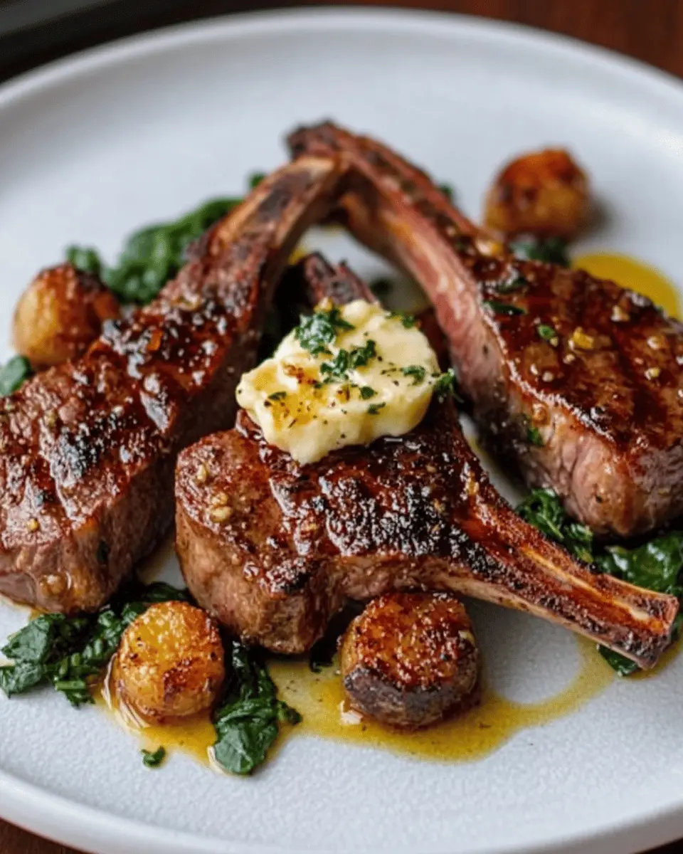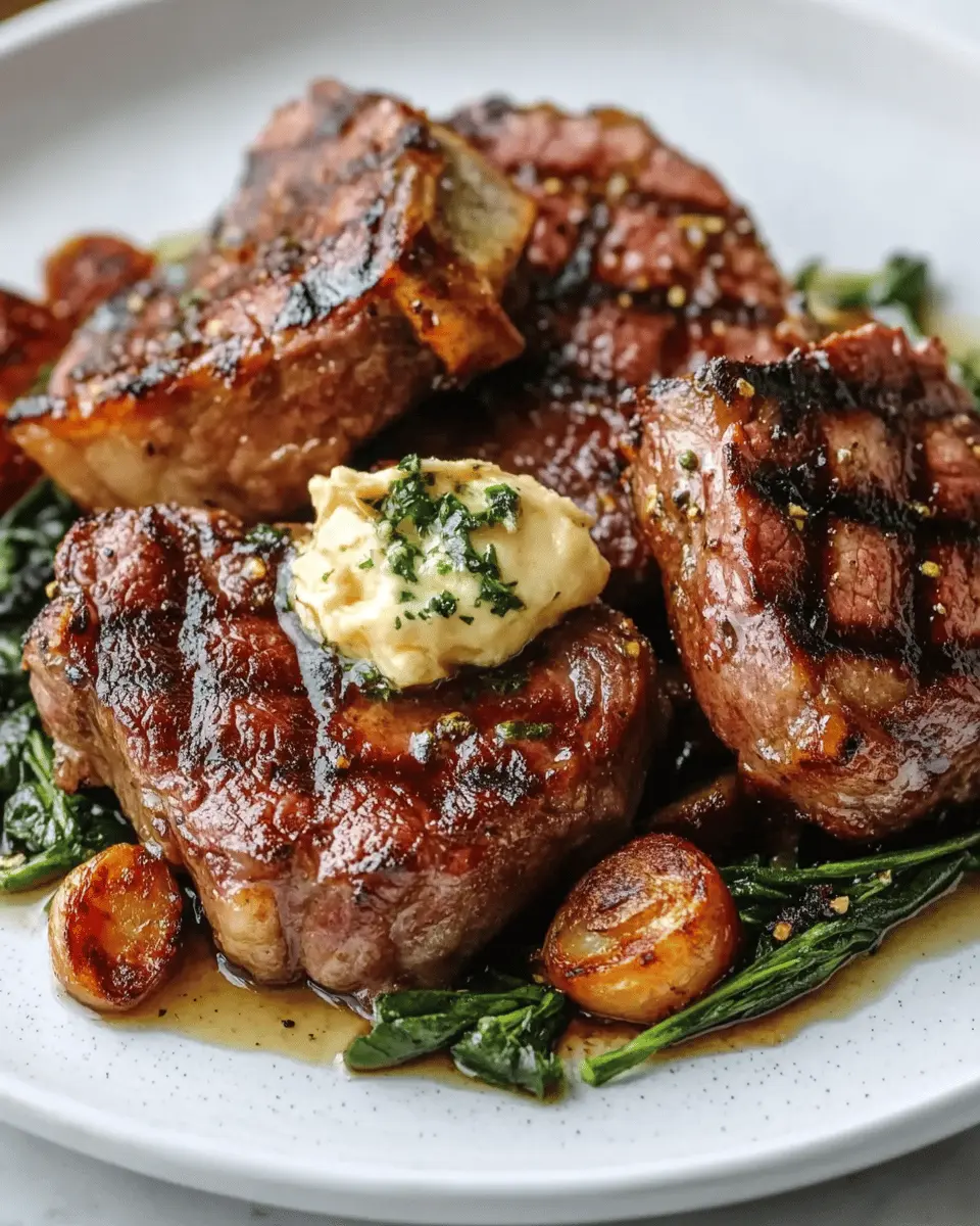 Deliciously grilled lamb chops topped with garlic-herb butter for a perfect flavor combination.