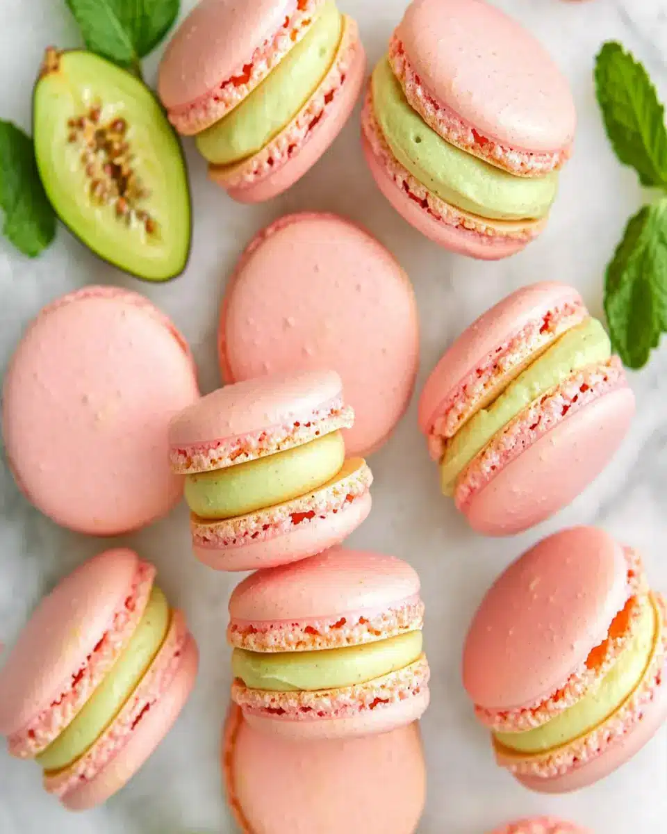 Delicious guava-flavored macarons filled with creamy guava buttercream.
