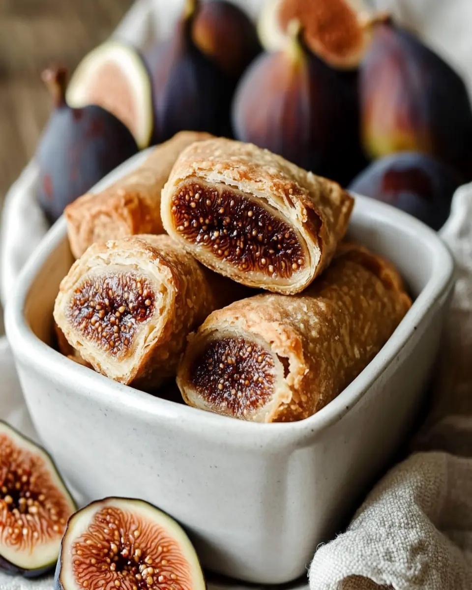 Enjoy these fig rolls with a warm cup of tea or coffee. The subtle spices in the rolls, like cinnamon and nutmeg, pair beautifully with a variety of beverages, making them a delightful afternoon treat or a cozy dessert.