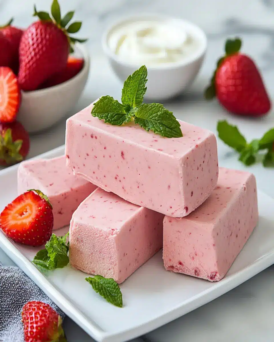 To get the creamiest texture, let the bars sit at room temperature for a few minutes before serving. This will make them easier to cut and give a smoother mouthfeel. Additionally, blending the strawberries thoroughly ensures a uniform consistency throughout the bars.