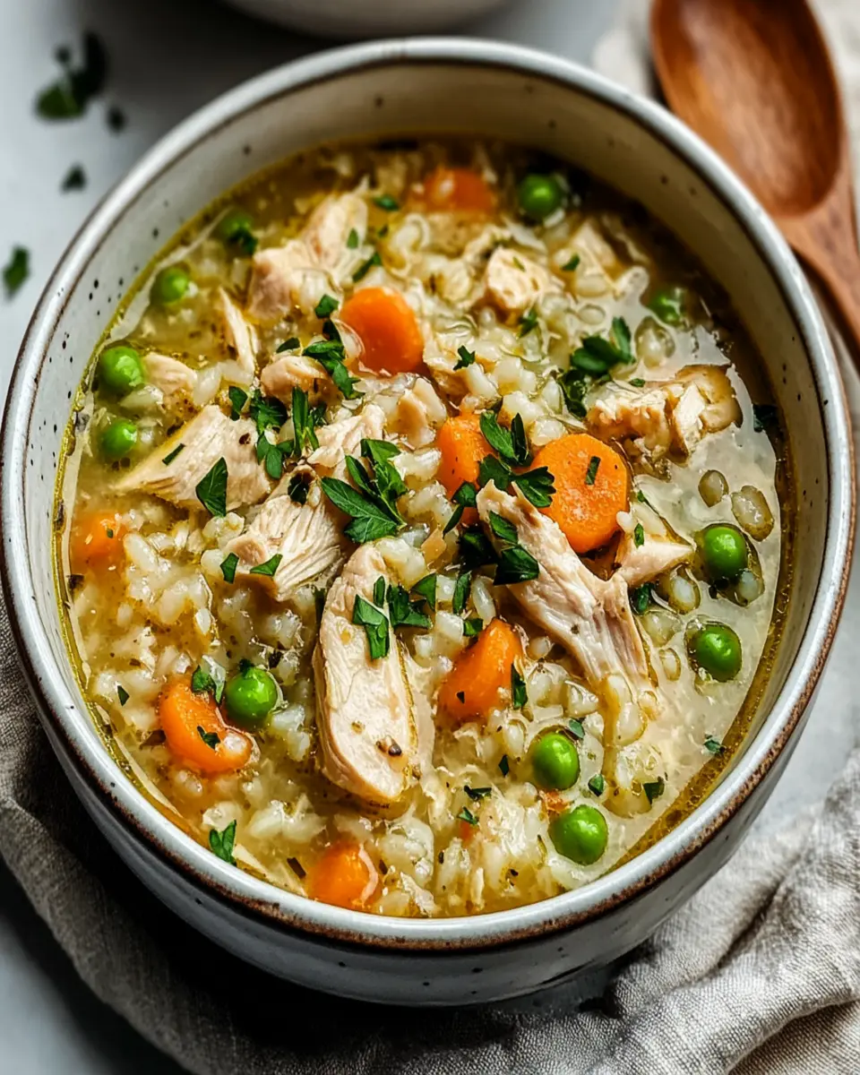 This soup can be stored in the refrigerator for up to 3 days, making it a great option for meal prep. When reheating, add a splash of broth or water to restore the consistency, as the rice may absorb some liquid during storage. For best results, heat gently on the stovetop rather than in the microwave to maintain the soup’s texture.