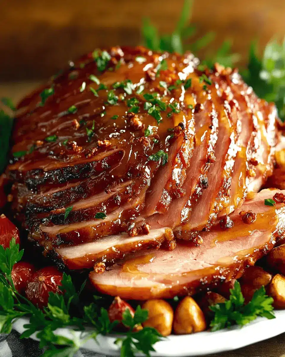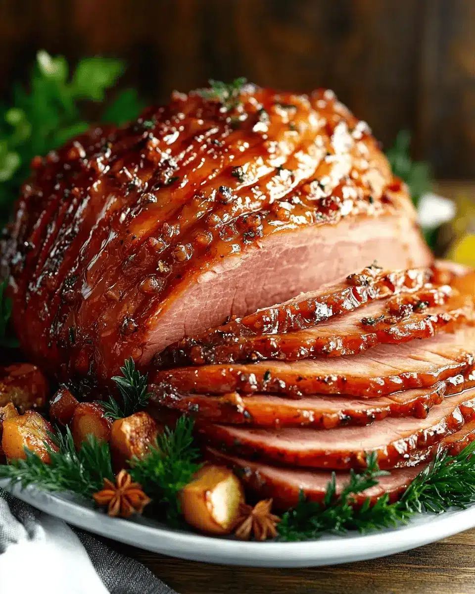 This Honey-Mustard Baked Ham is an impressive centerpiece for any holiday meal, infused with warm spices and a sweet glaze.