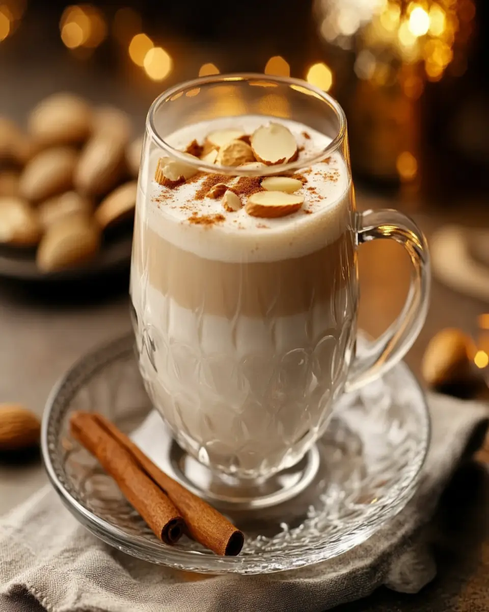 A hint of vanilla extract rounds out the flavors beautifully, adding depth and warmth to the drink. It complements the almond and sugar perfectly, creating a harmonious blend of tastes.