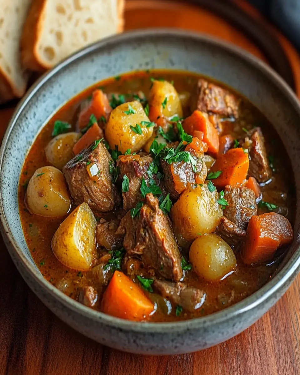 A hearty and traditional Irish lamb stew filled with tender lamb, root vegetables, and fresh herbs.