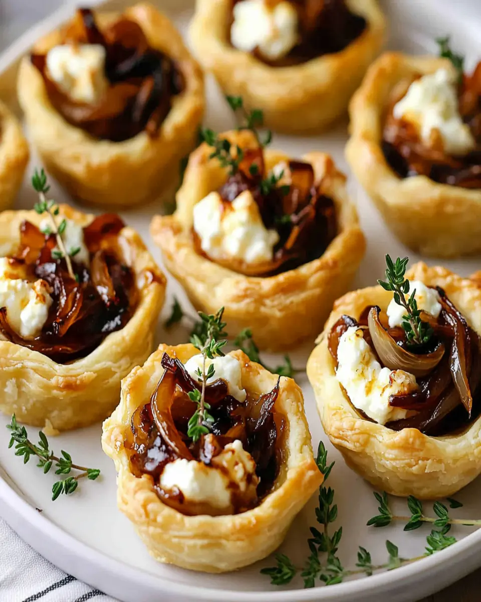 In conclusion, the Irresistible Caramelized Onion and Goat Cheese Tarts are not only a delightful treat but also a versatile addition to any meal. With their sweet and savory flavors, they make for a perfect appetizer or snack that can impress your guests and satisfy your cravings. Whether you choose to serve them at a dinner party or enjoy them as a quick bite at home, these tarts are sure to become a favorite. Don’t forget to share your experience or any variations you try—happy cooking!