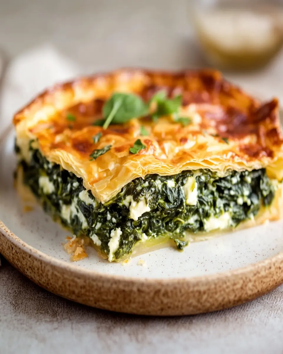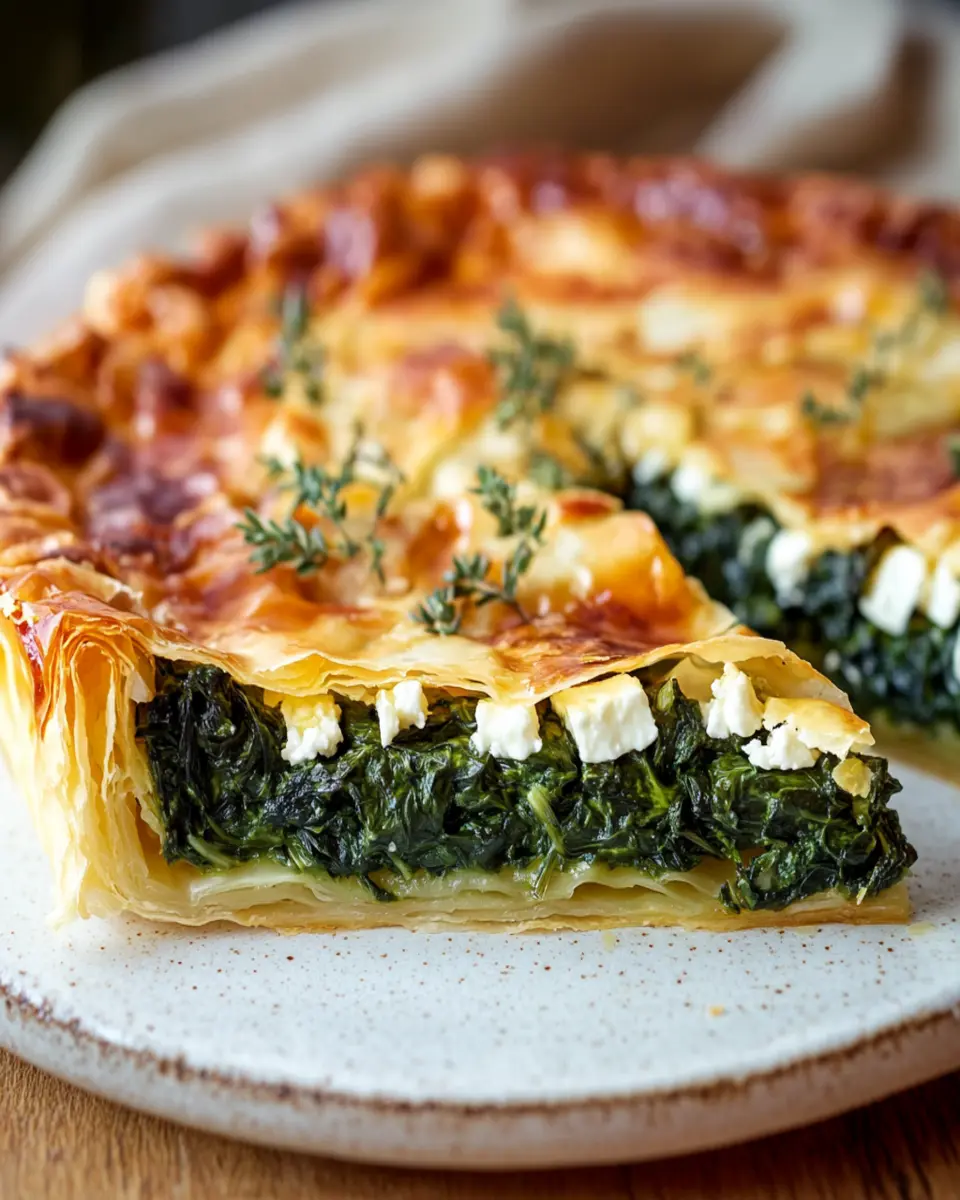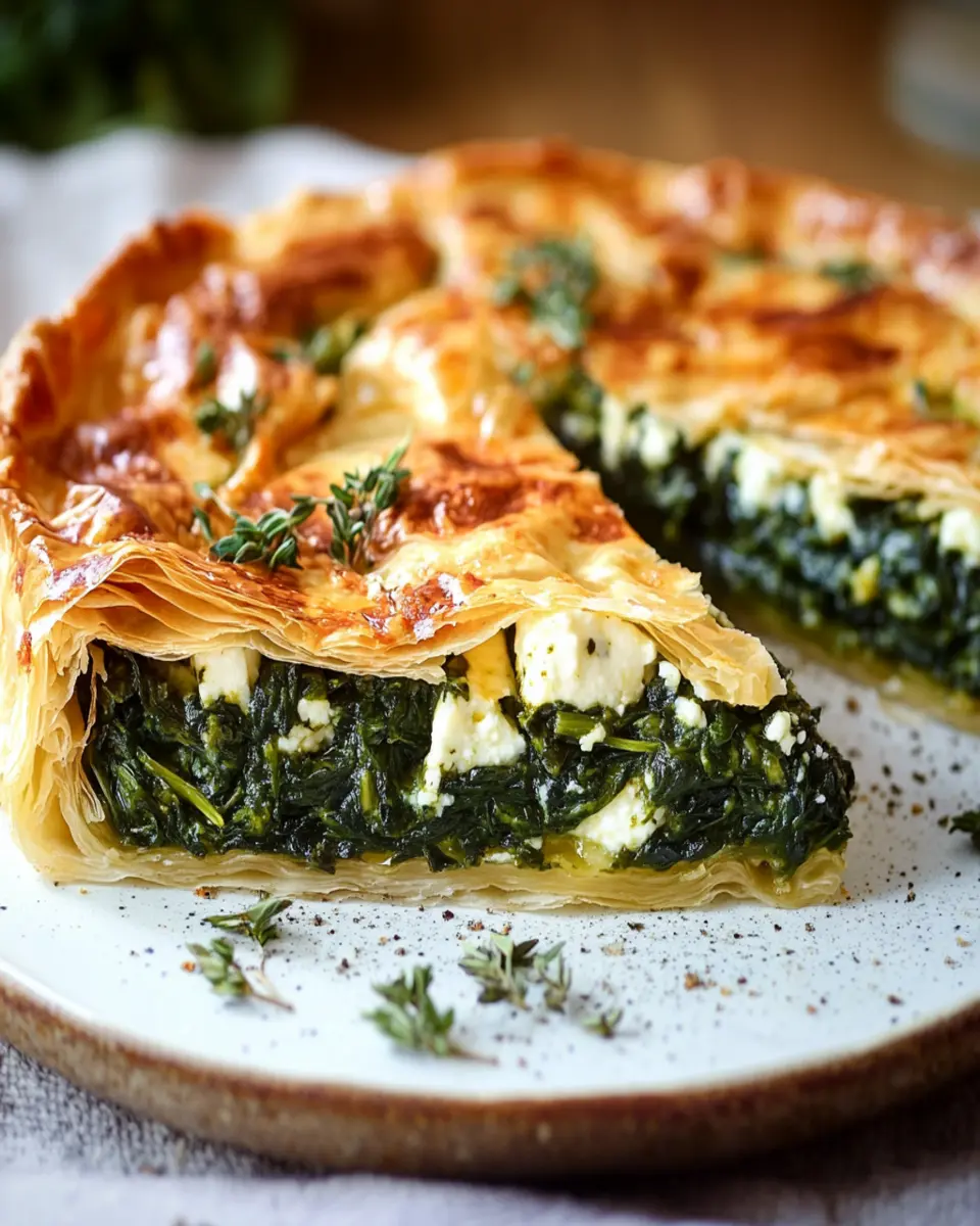 Feta cheese brings a tangy, salty flavor that is quintessential in Greek cuisine. Its crumbly texture also enhances the dish, adding depth to each bite of the pie.