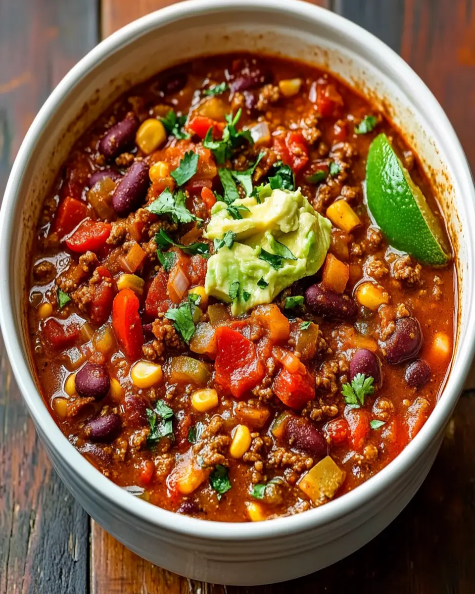 One of the best aspects of this chili is its nutritional value. With a variety of ingredients, including black beans, corn, and plenty of fresh vegetables, you’re getting a meal that’s rich in protein, fiber, and essential vitamins. It’s a satisfying dish that can help you fuel your day without weighing you down.