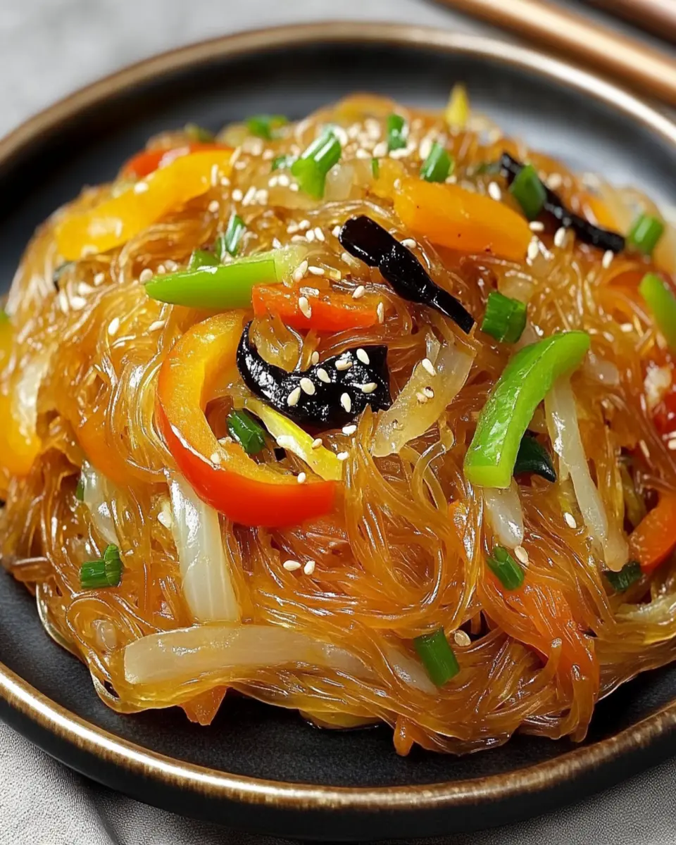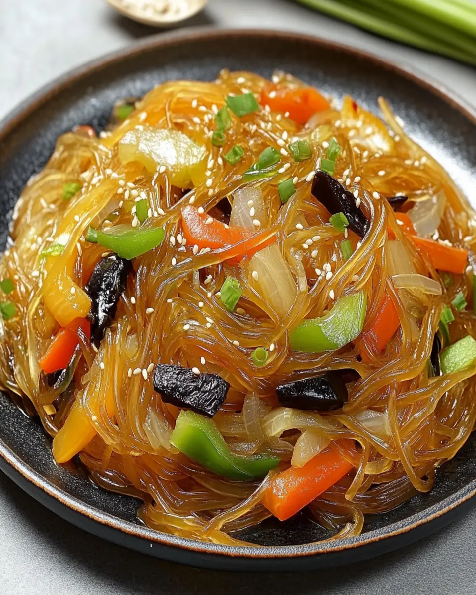 A delicious and healthy stir-fry featuring sweet potato glass noodles, loaded with vegetables and flavors.