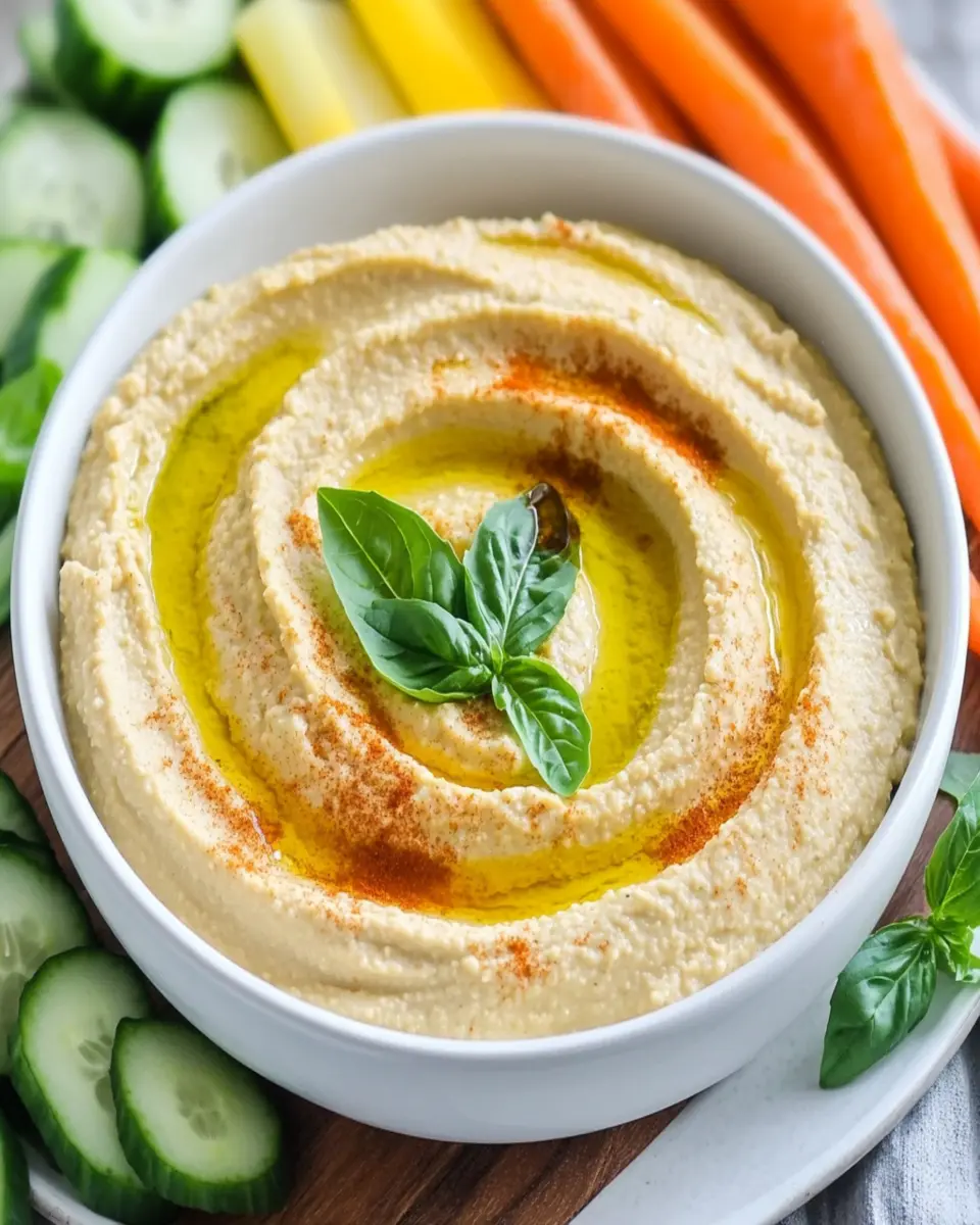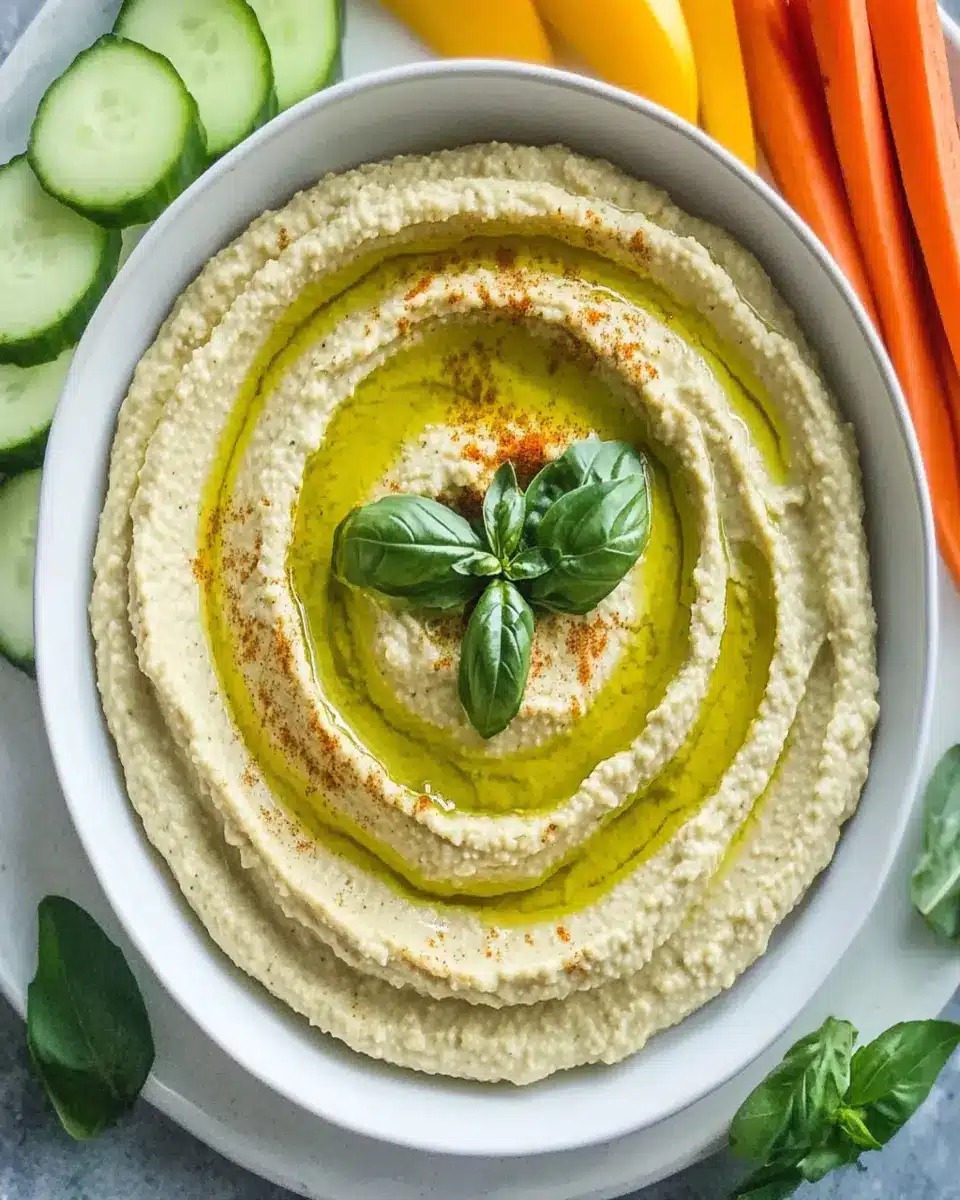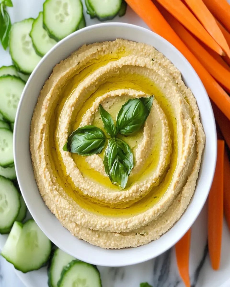 Lemon Basil Hummus is a refreshing twist on traditional hummus, made by blending chickpeas with tahini, olive oil, garlic, fresh basil, and lemon juice. This vibrant dip is perfect for parties or as a healthy snack.