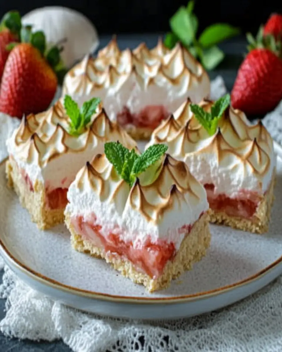 Low Carb Strawberry-Rhubarb Meringue Pie Bars