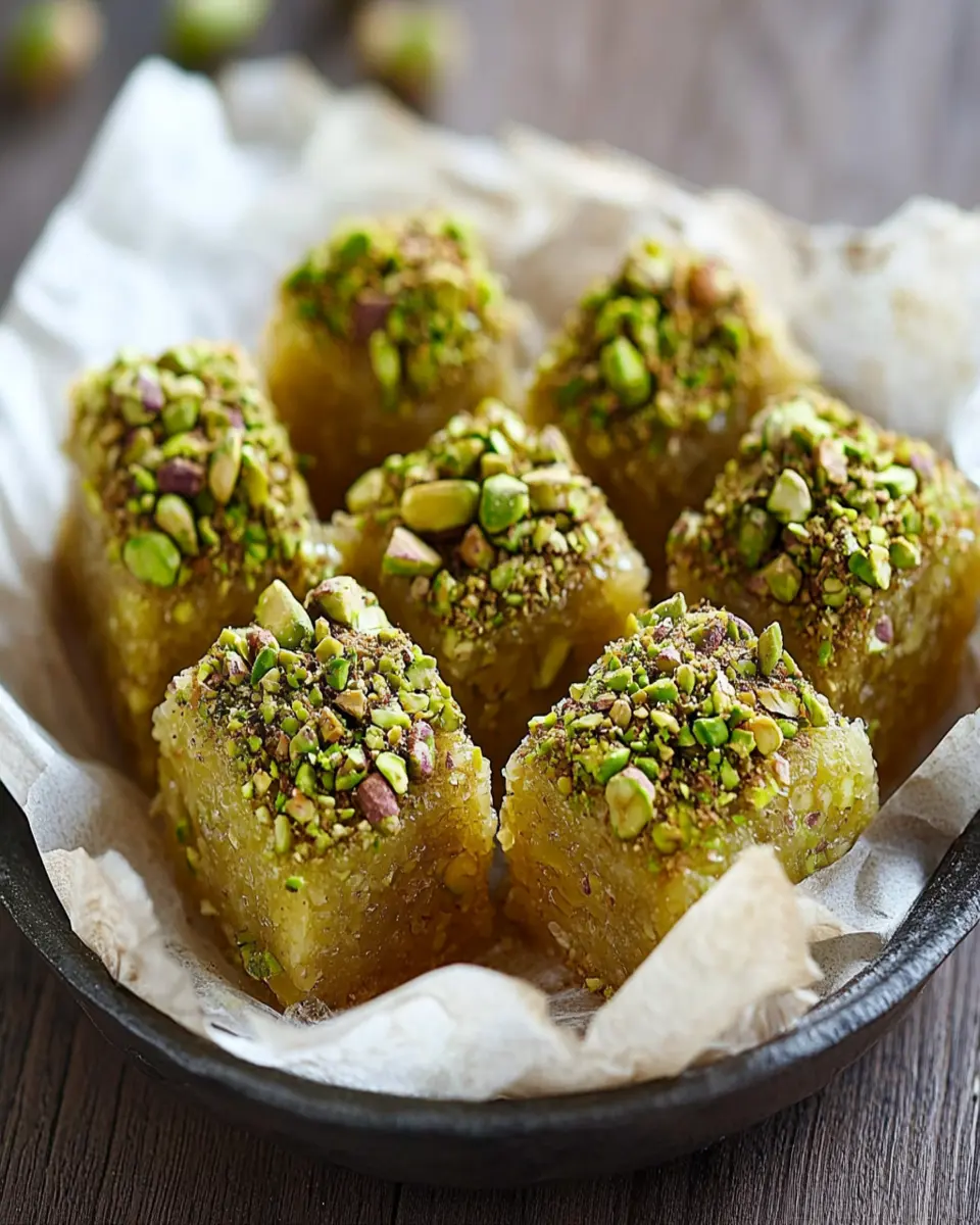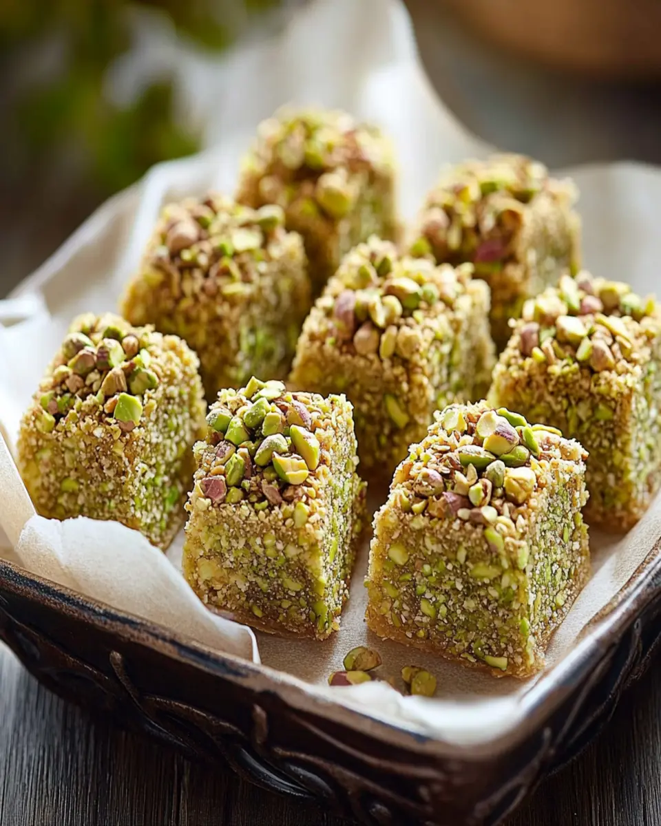 For an impressive presentation, arrange the squares on a decorative platter and sprinkle extra crushed pistachios on top. You might also want to add edible flowers for a touch of elegance, creating a visually appealing centerpiece.