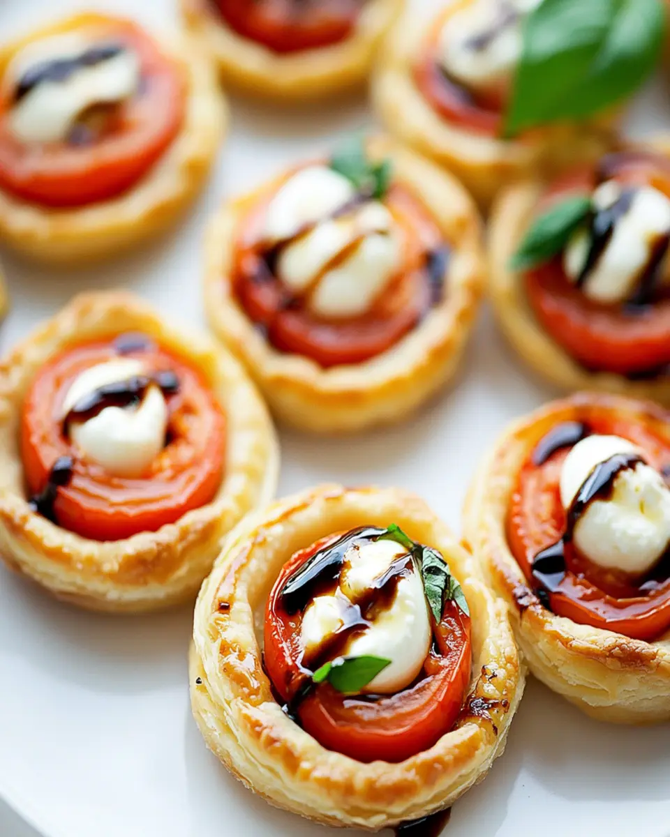 So, roll out that puff pastry, gather your fresh ingredients, and get ready to enjoy these Mini Tomato and Mozzarella Tarts at your next event. Don’t forget to save this recipe to share with friends and family, and let us know how they turned out for you!