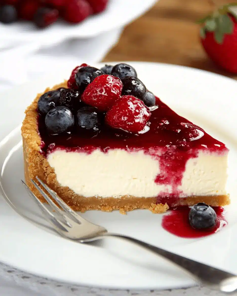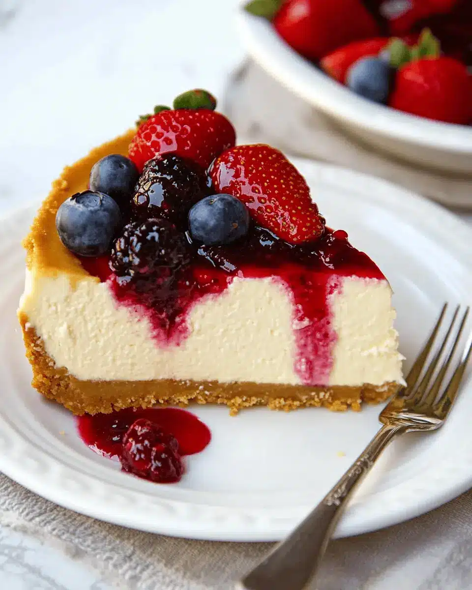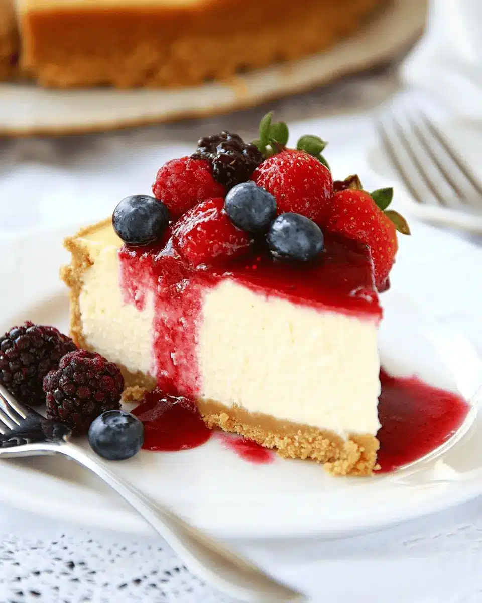 A slice of New York cheesecake pairs beautifully with fresh fruit toppings. Consider serving it with a vibrant berry compote or a drizzle of chocolate sauce for a touch of decadence. The tartness of berries complements the creamy filling perfectly, making each bite a harmonious blend of flavors.