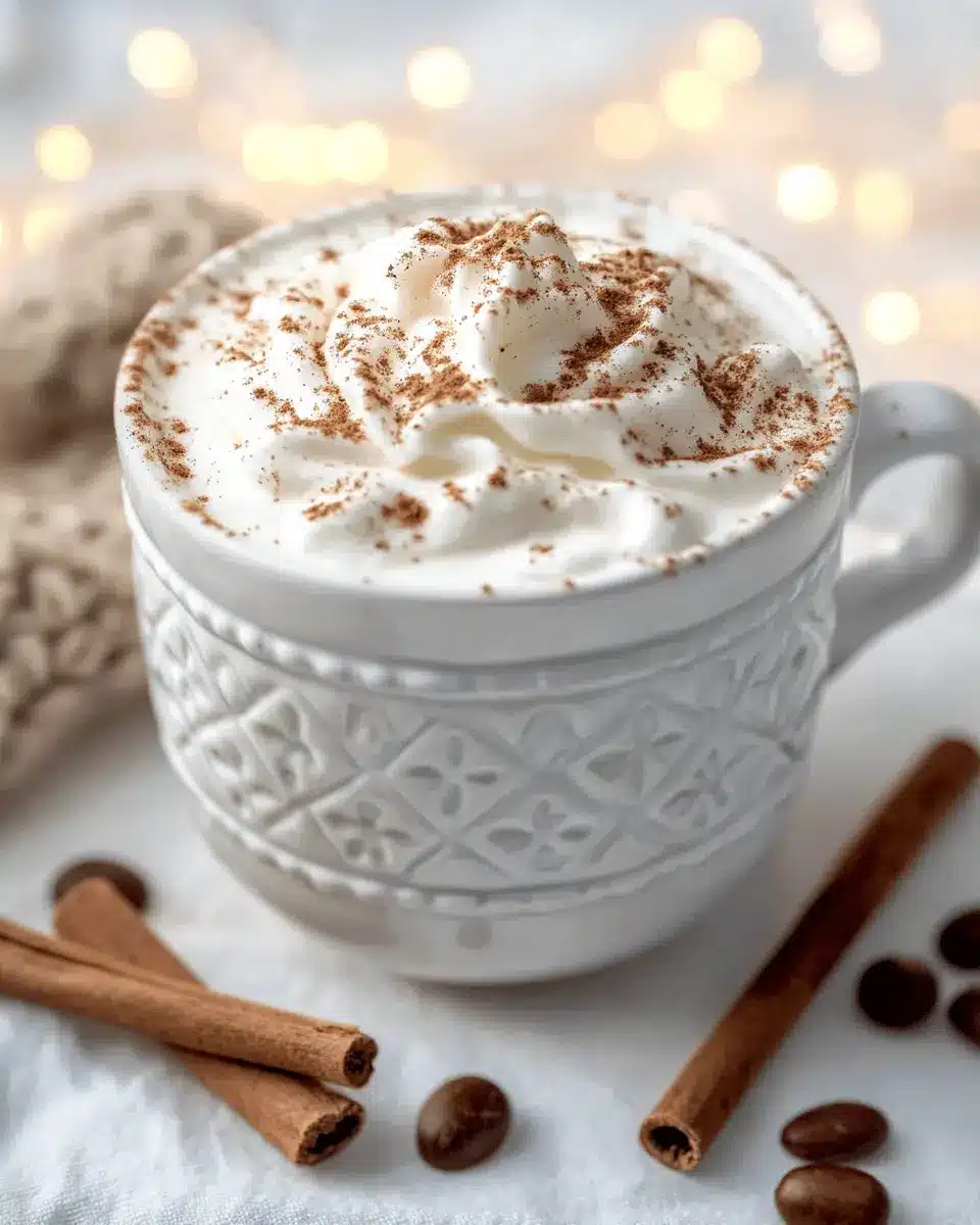 This creamy Nutmeg Hot White Cocoa is perfect for a cozy night in, filled with the delightful warmth of nutmeg.