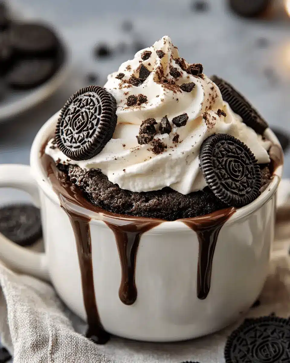 While the classic Oreo topping is always a hit, don’t hesitate to get creative with your toppings. Whipped cream, a sprinkle of powdered sugar, or even a drizzle of caramel sauce can elevate your mug cake to the next level. For a more indulgent experience, consider adding a scoop of ice cream on top—because who doesn’t love warm cake with cold ice cream?