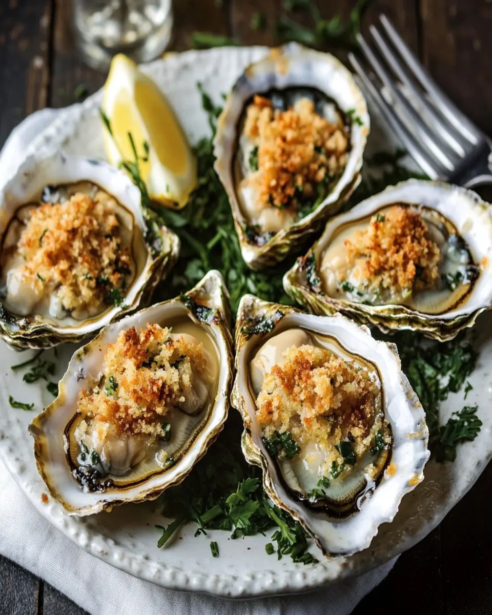 Breadcrumbs provide the necessary crunch on top, creating a delightful contrast to the tender oysters beneath.